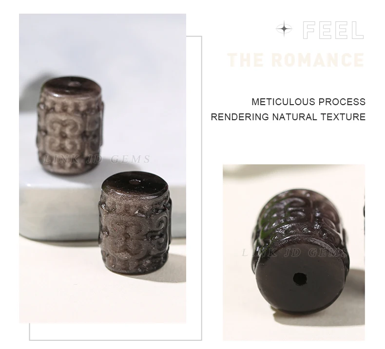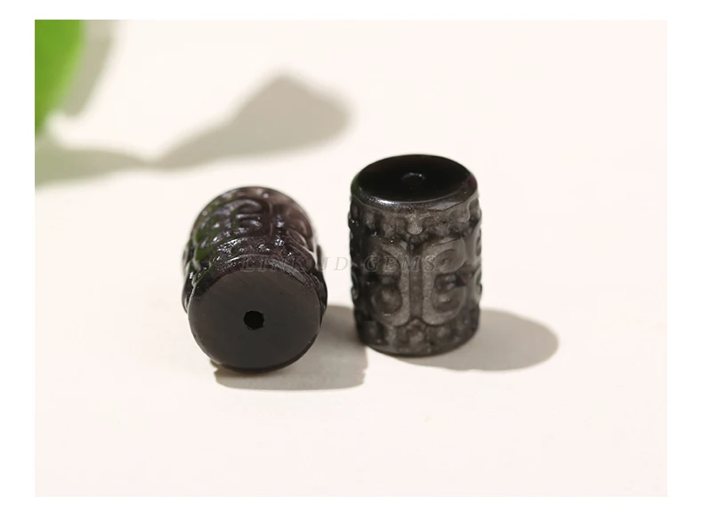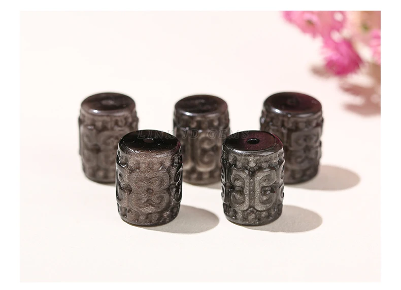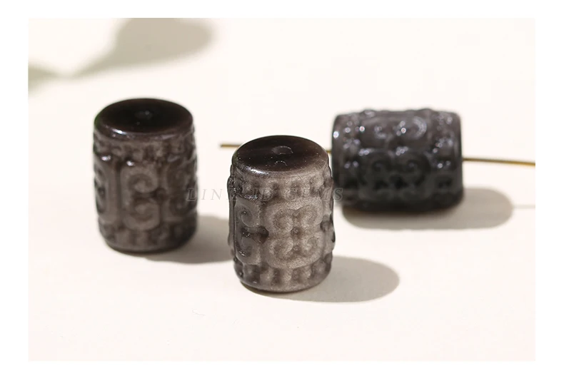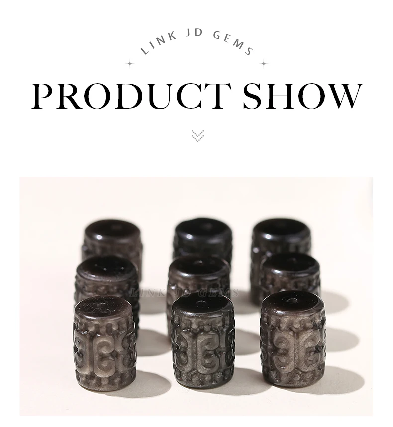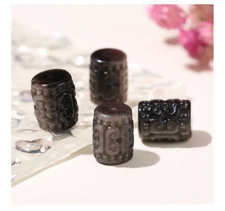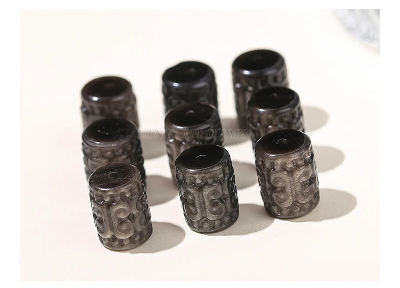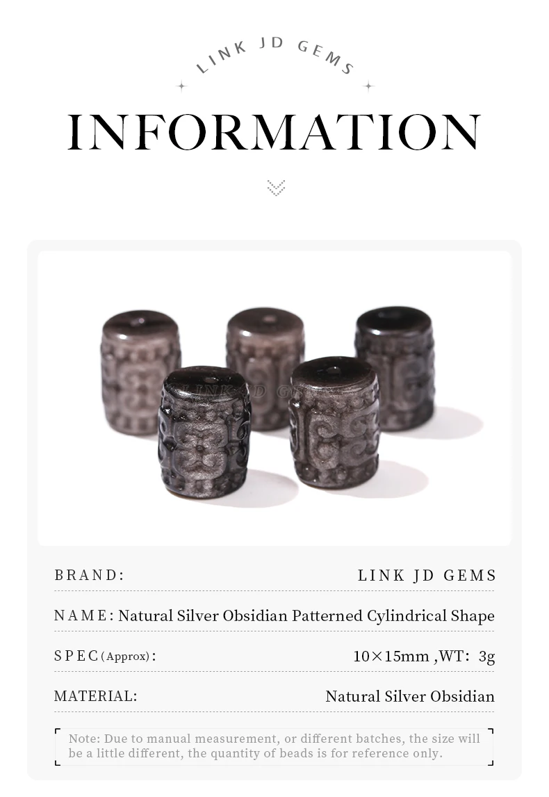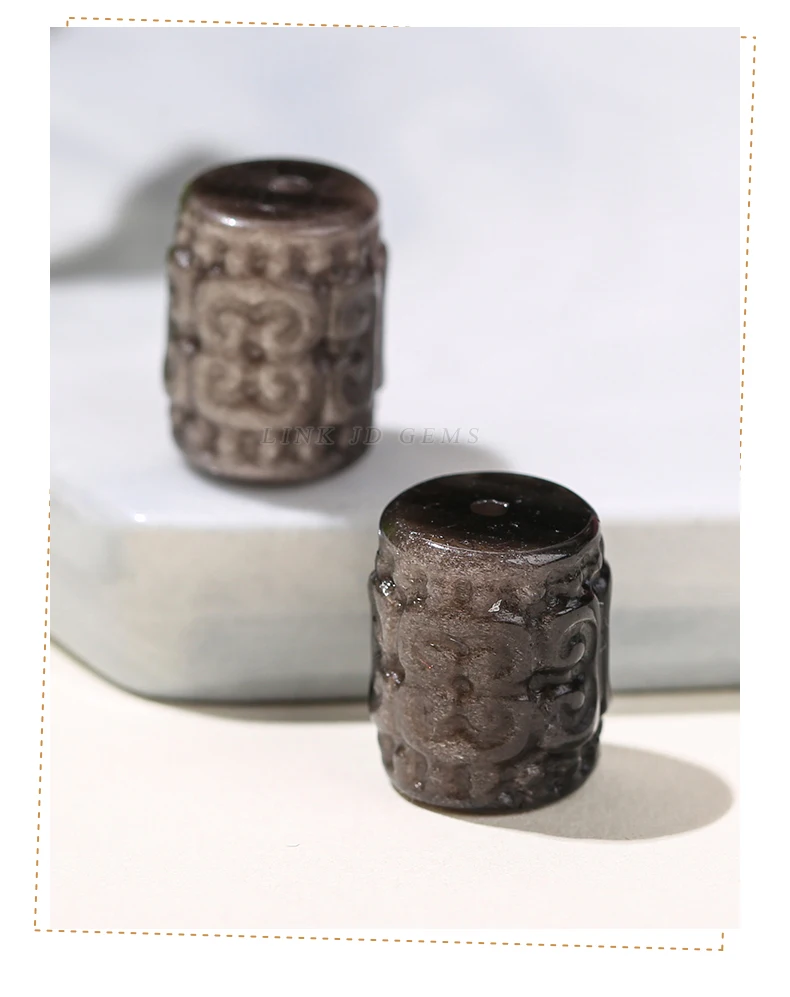 1 Pc Natural Silver Obsidian Carved Patterned Cylindrical Shape Bead For Jewelry Making Diy Necklace Bracelet Accessory Pendant
