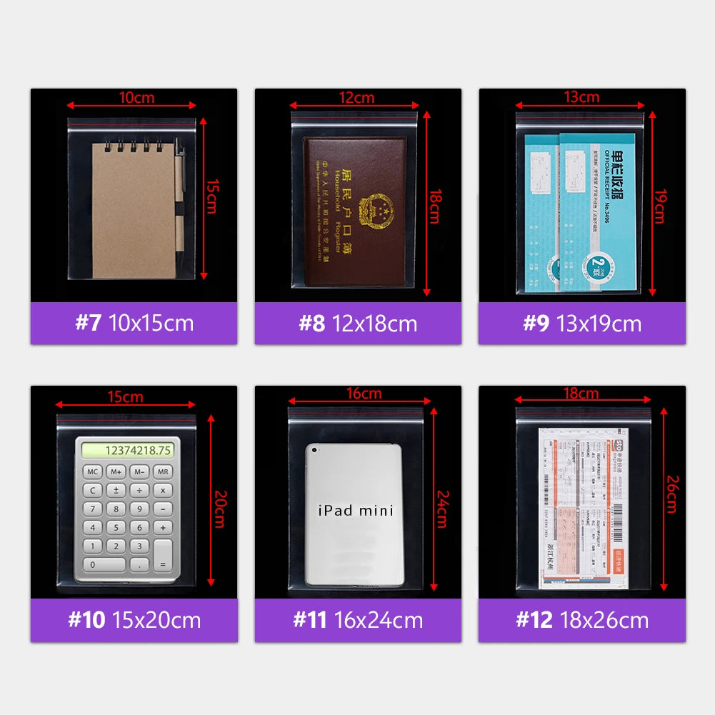 100PCS Plastic Bags Jewelry Zip Zipped Lock Reclosable Poly Clear Packaging Bags Different Size