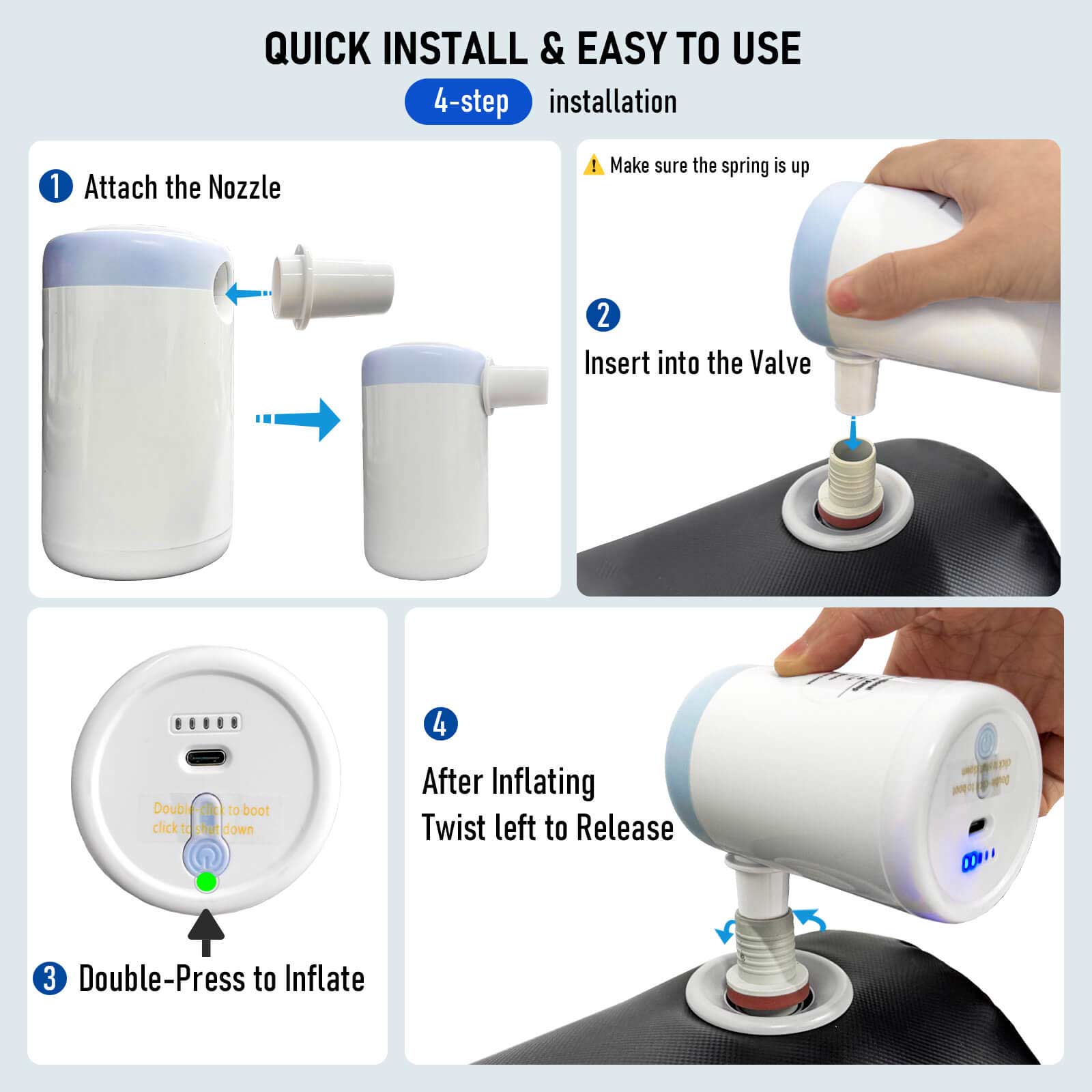 Electric air pump included for fast, effortless setup — no manual pumping required.