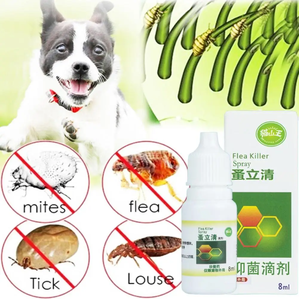 8ML Flea Spray Mild Safe Ingredients Long Lasting Itch Relief Fast Acting Remove Ticks Fleas Universal Pet Dog Anti-flea Mites Ticks Drops Indoor