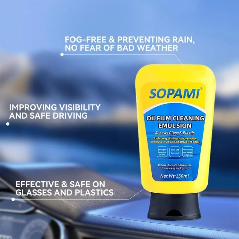 150ml Car Glass Oil Film Cleaning Agent Glass Coating Remover Paste Waterproof Anti-Glare Glass Window Cleaner Cream with Sponge