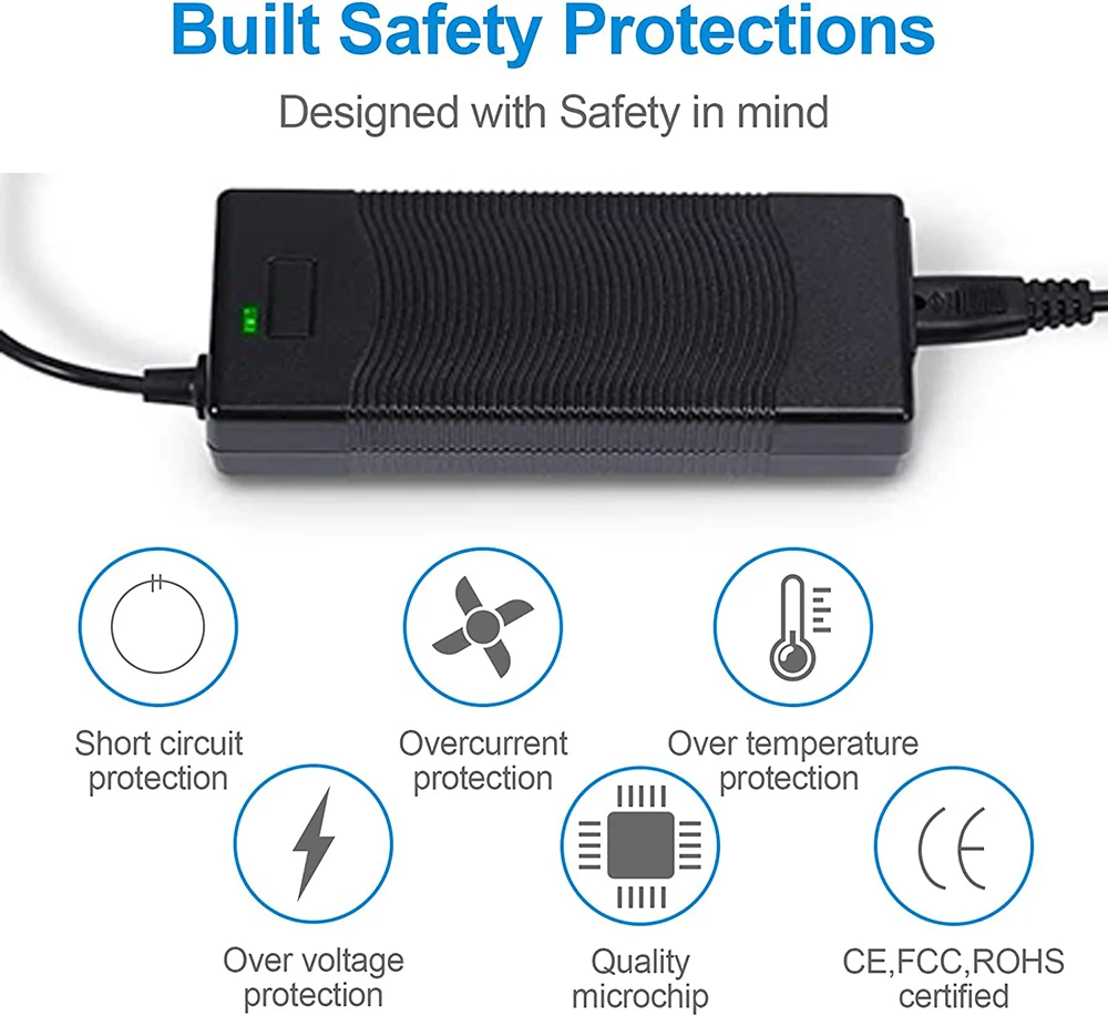 With over-current protection, over-discharge protection, over-voltage protection, overcharge protection, short circuit protection.(Enter Protection mode , with flashing red light).