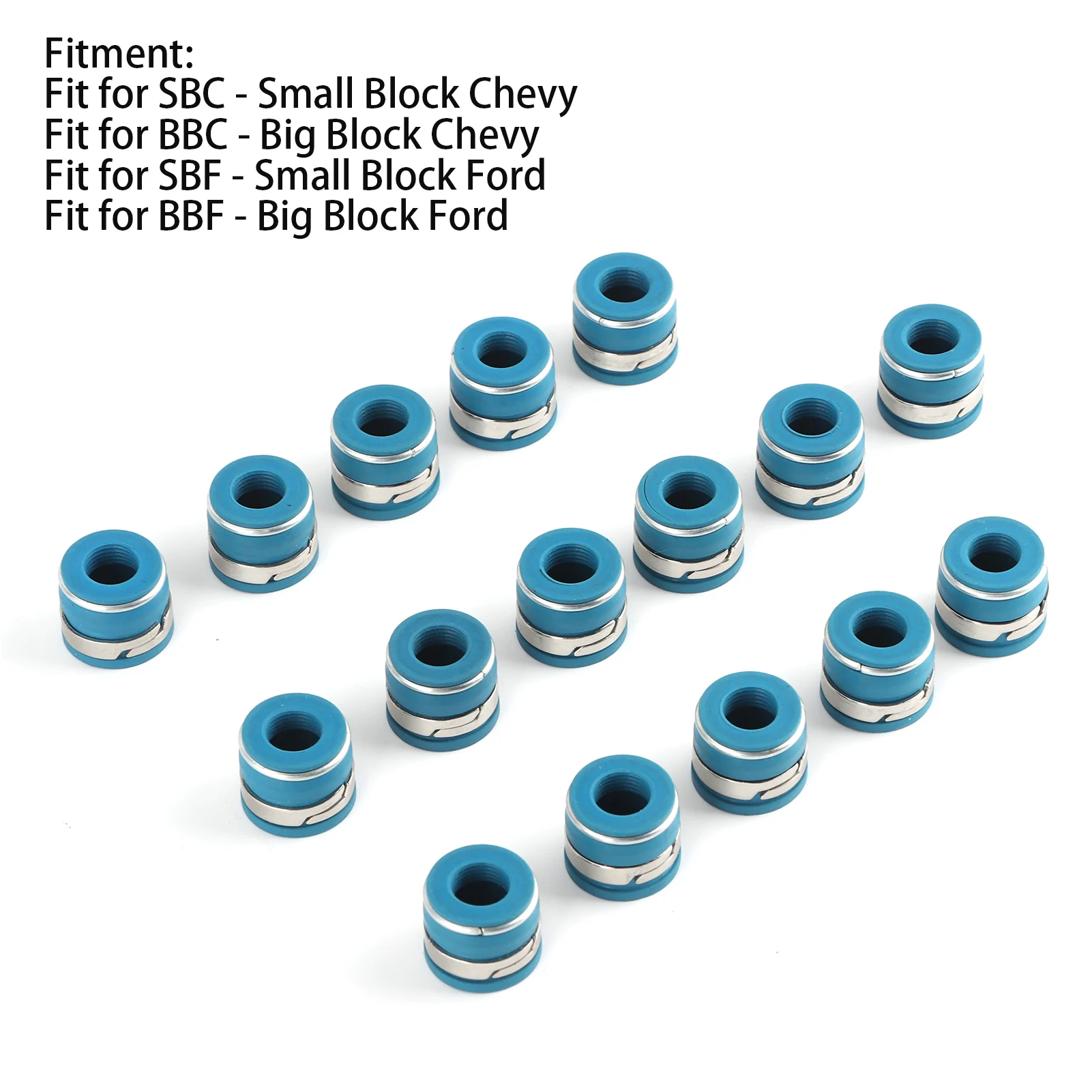 16pcs Valve Stem Oil Seals Set Fluororubber Excellent Sealing Parts Fit For GM SBC V8 Engine