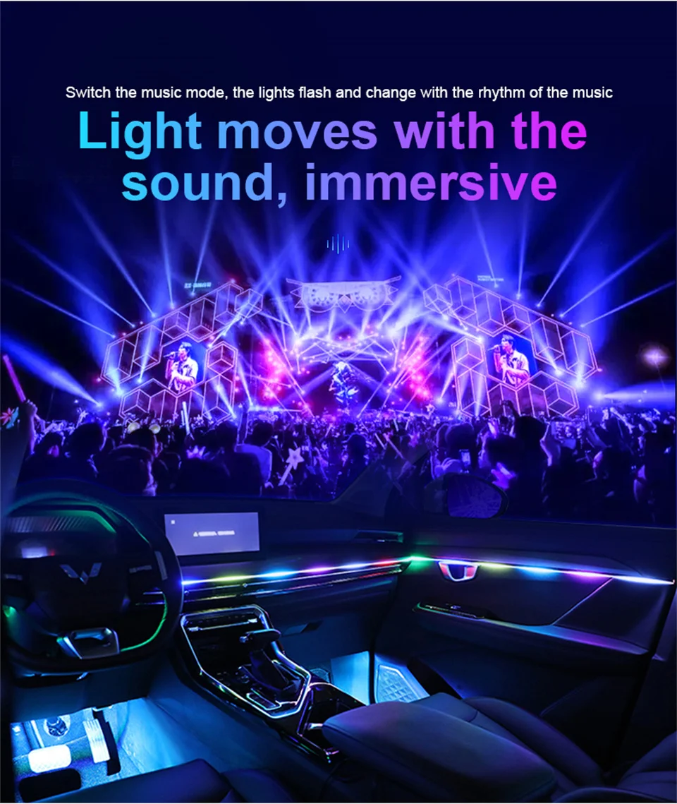 18 in 1 Car LED Symphony Ambient Light RGB Neon Hidden Acrylic Strip Interior Decoration Accessorie Atmosphere Lamp Kit With App