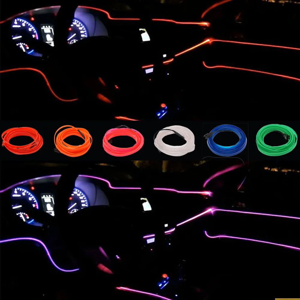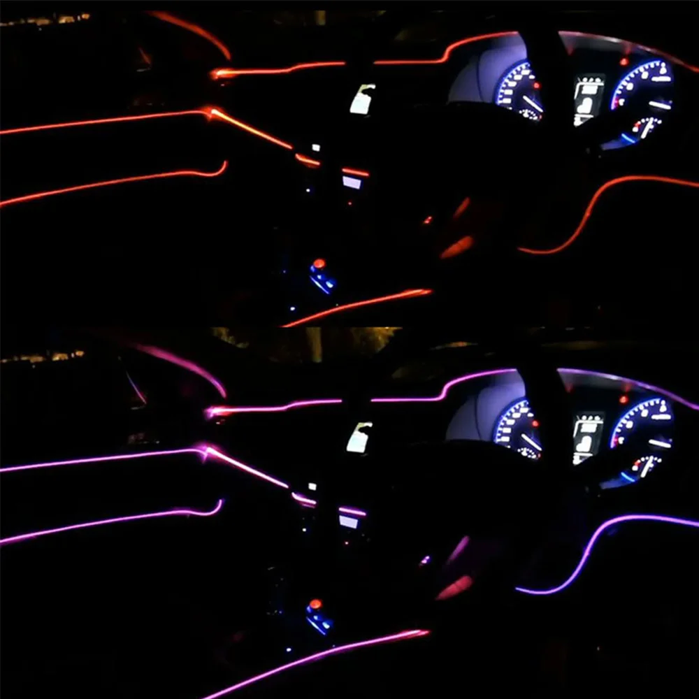 1M/2M/3M/5M Car Interior Lighting LED Strip Auto Decoration Wire Rope Tube Line Flexible Neon Lights With USB Drive Atmosphere