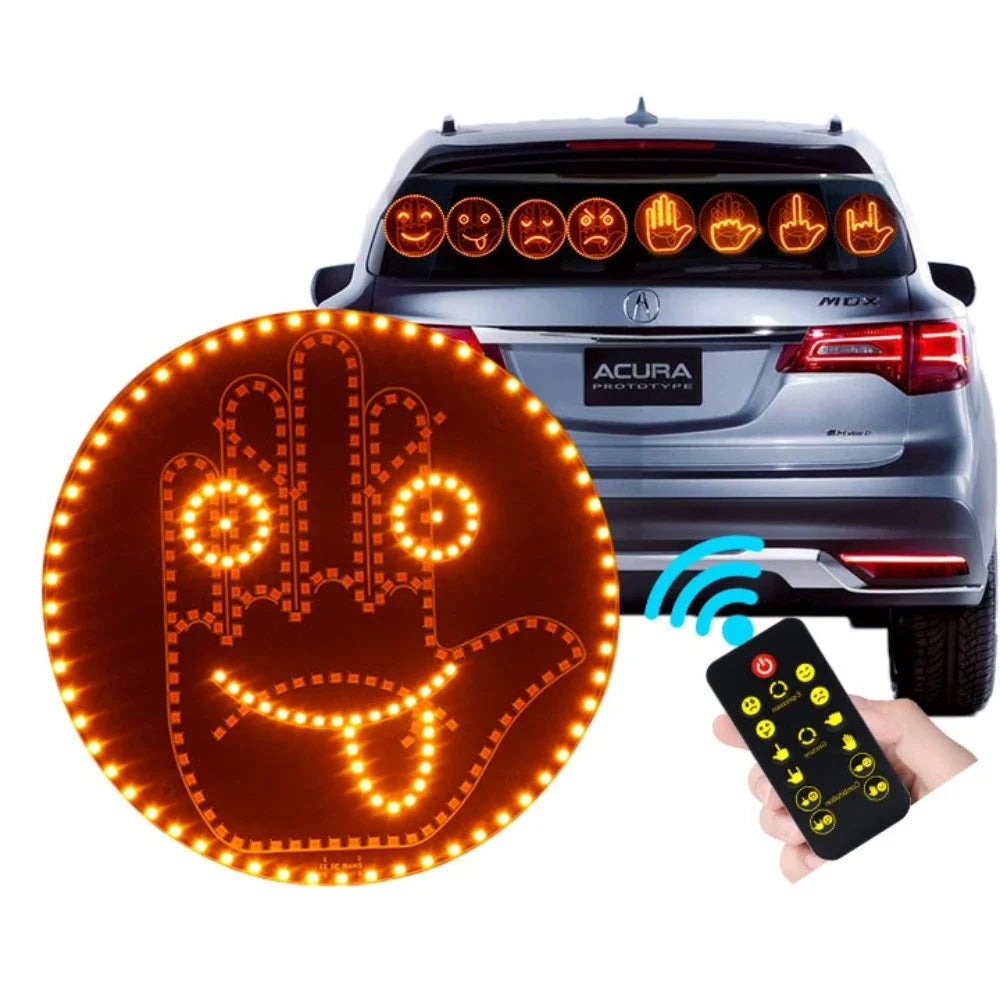 1pc Expression Fun Gesture LED Car Rear Windshield Display Sign, Round Light-up Emoticon Message Board with Remote Car Lights
