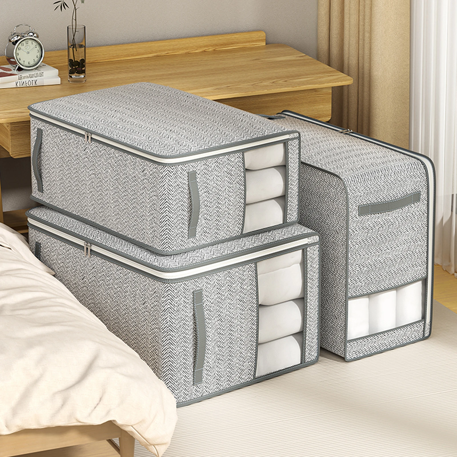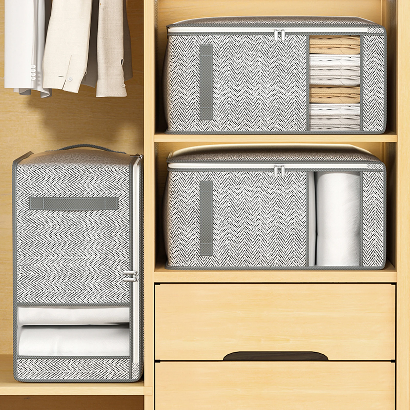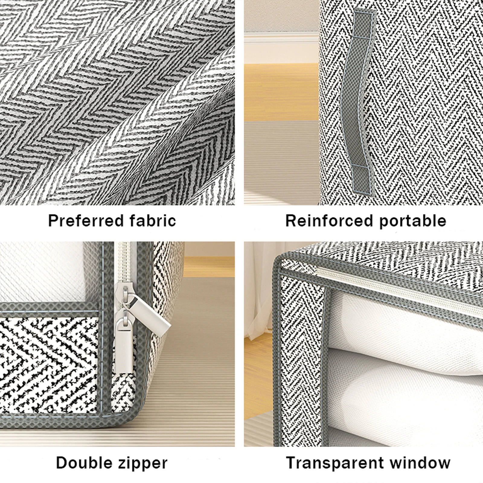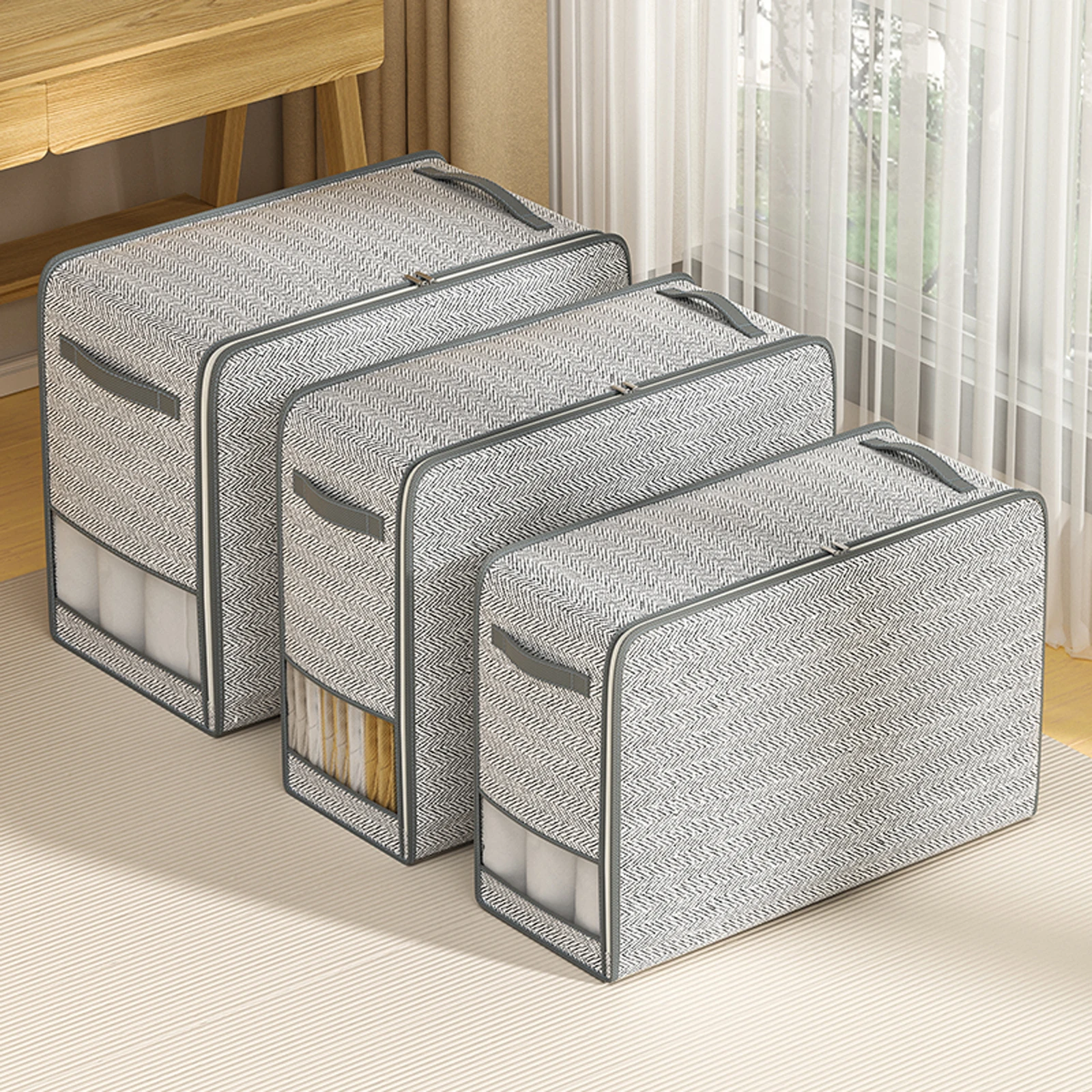1pc gray non-woven large capacity storage bag, folding clothes, blankets storage, window design, simple and large capacity