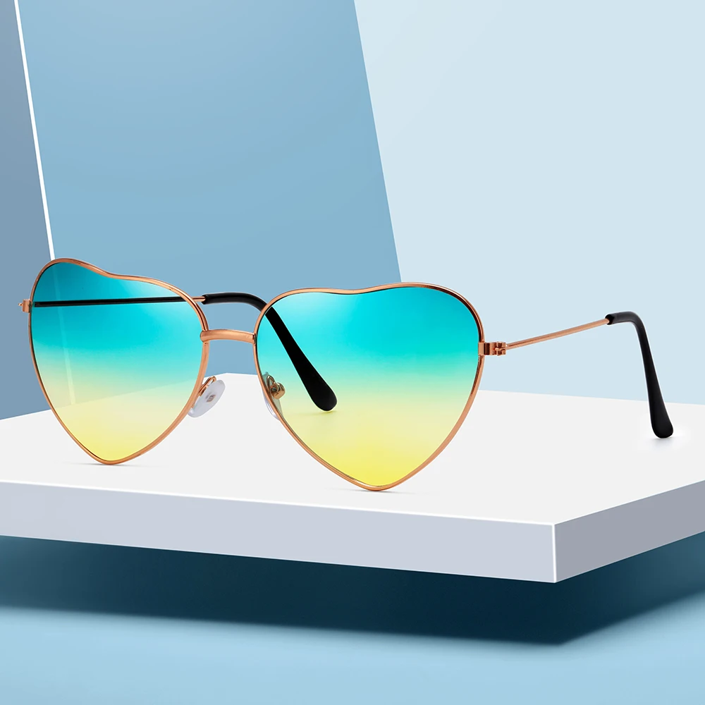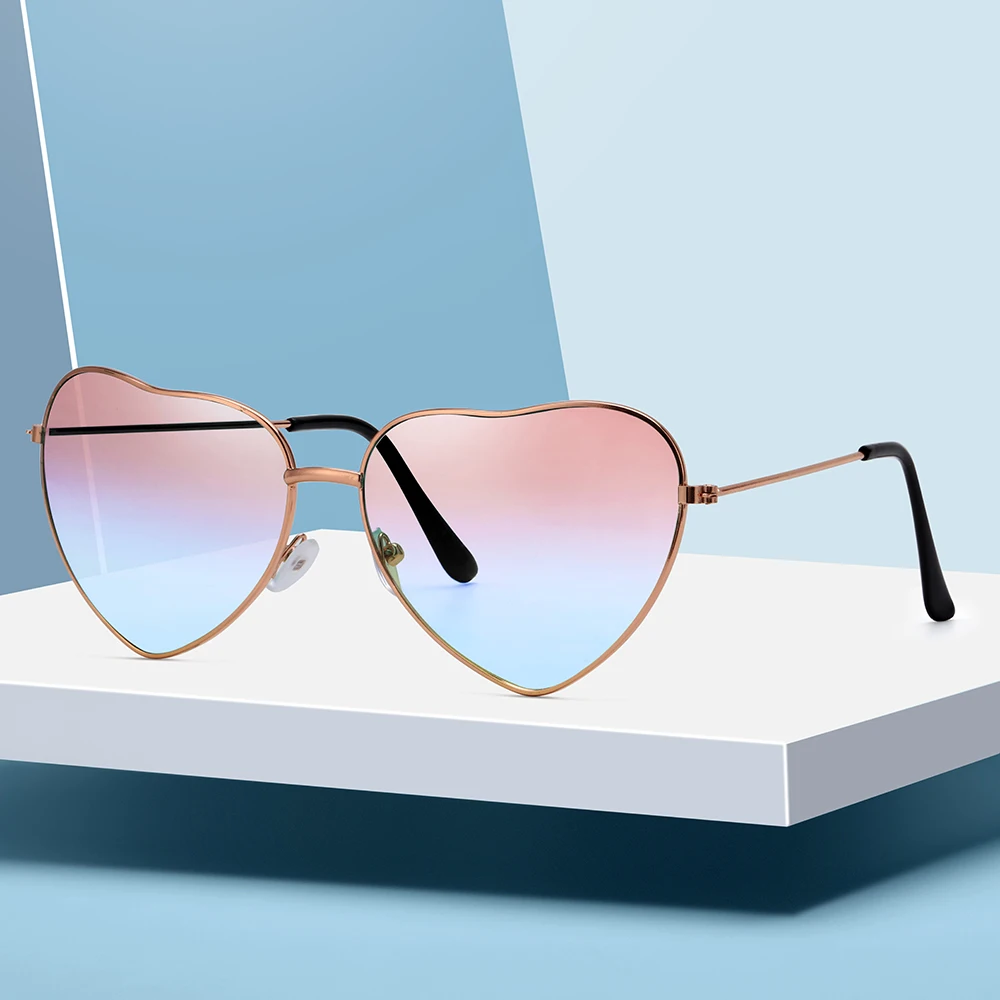 1PC Women Heart Shape Sunglasses luxury Brand Designer Men Metal Frame Sun Glasses Vintage Gradient Ocean Lenses UV400 Shades