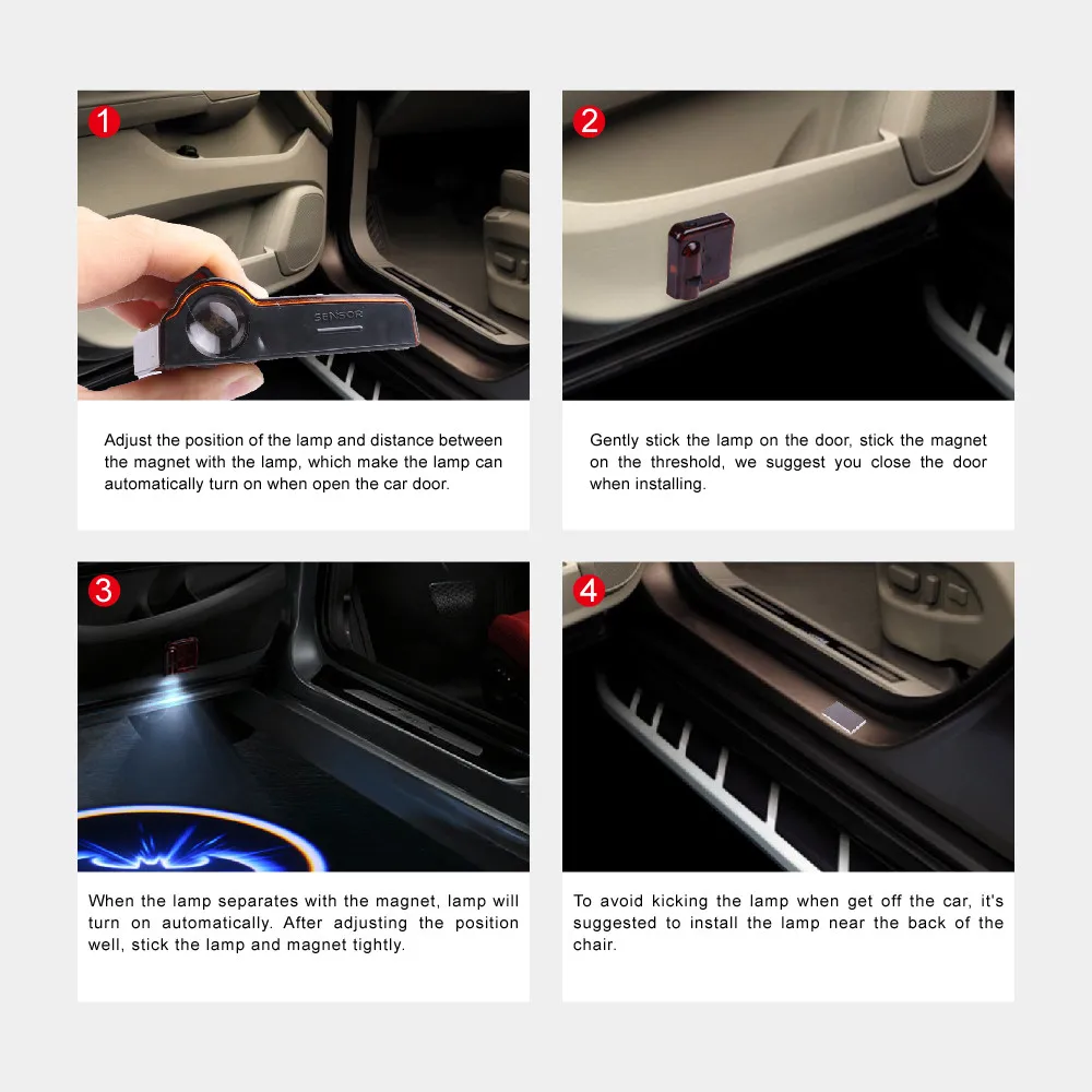 9. Can be installed on the left or right door, courtesy door light makes your car artistic.
