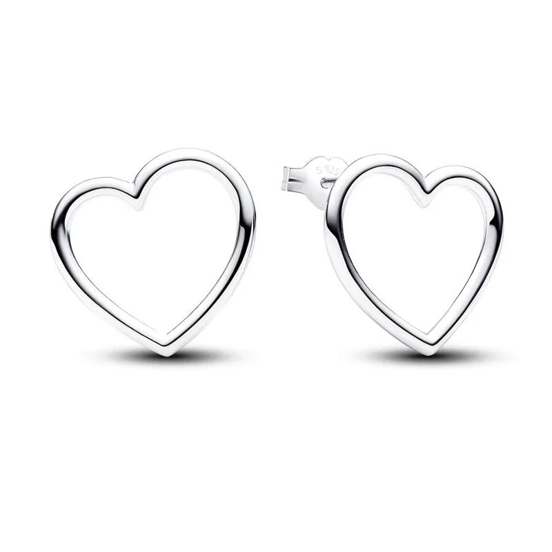 2024 New 925 Silver Asymmetrical Heart Hoop Earrings Front-facing Heart Stud Earrings DIY Women Earring Fine Jewelry