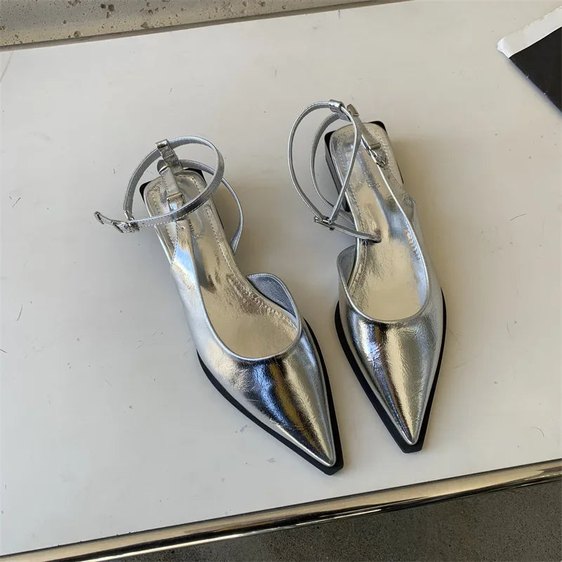 2024 Spring New Brand Women Pumps Shoes Fashion Silver Pointed Toe Ladies Elegant Slingback Sandals Zapatilla De Muje
