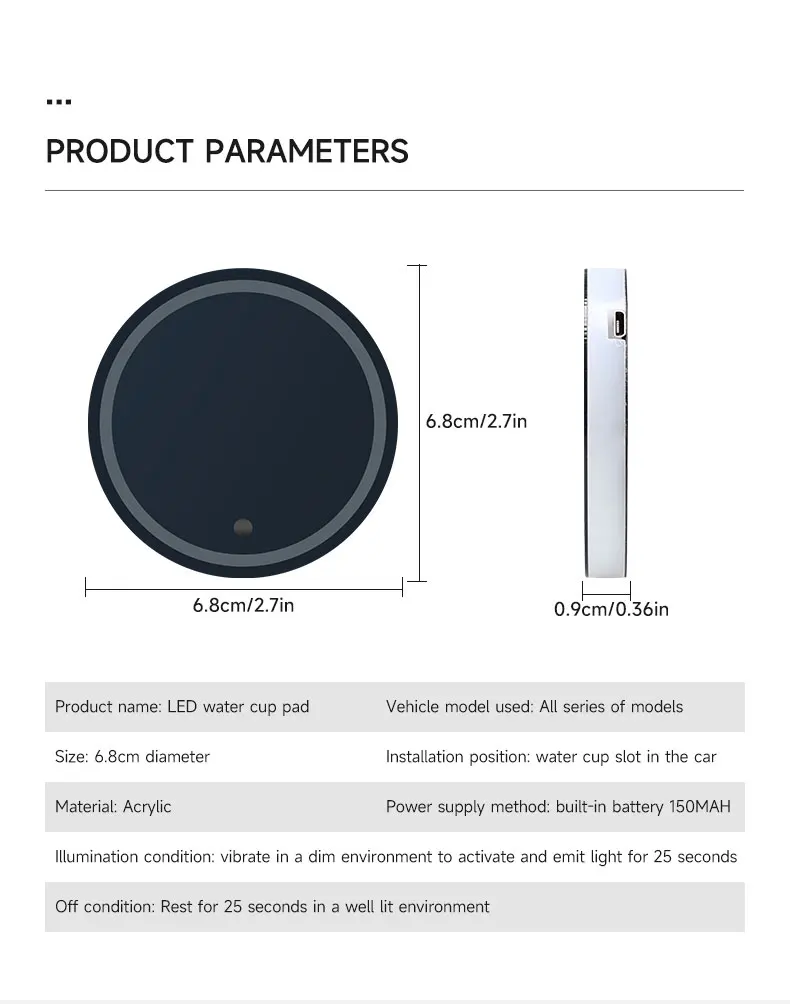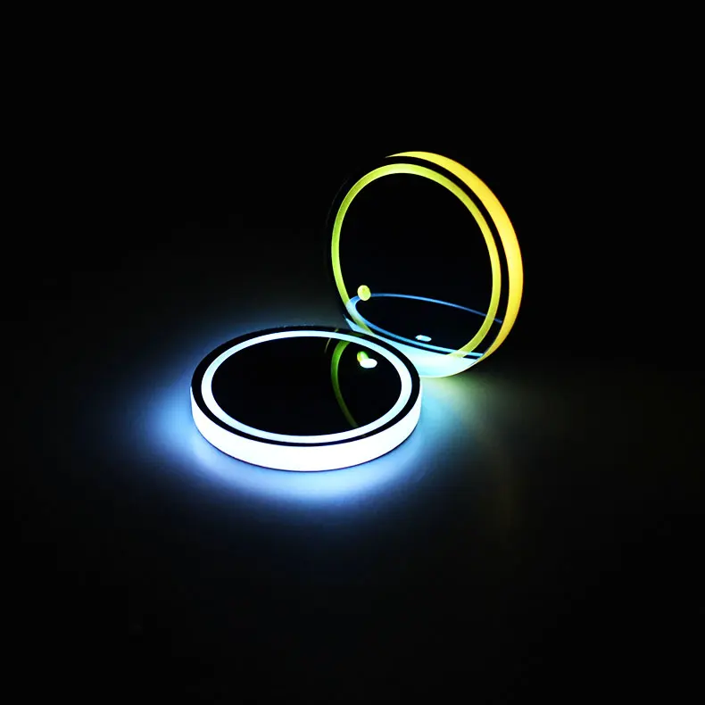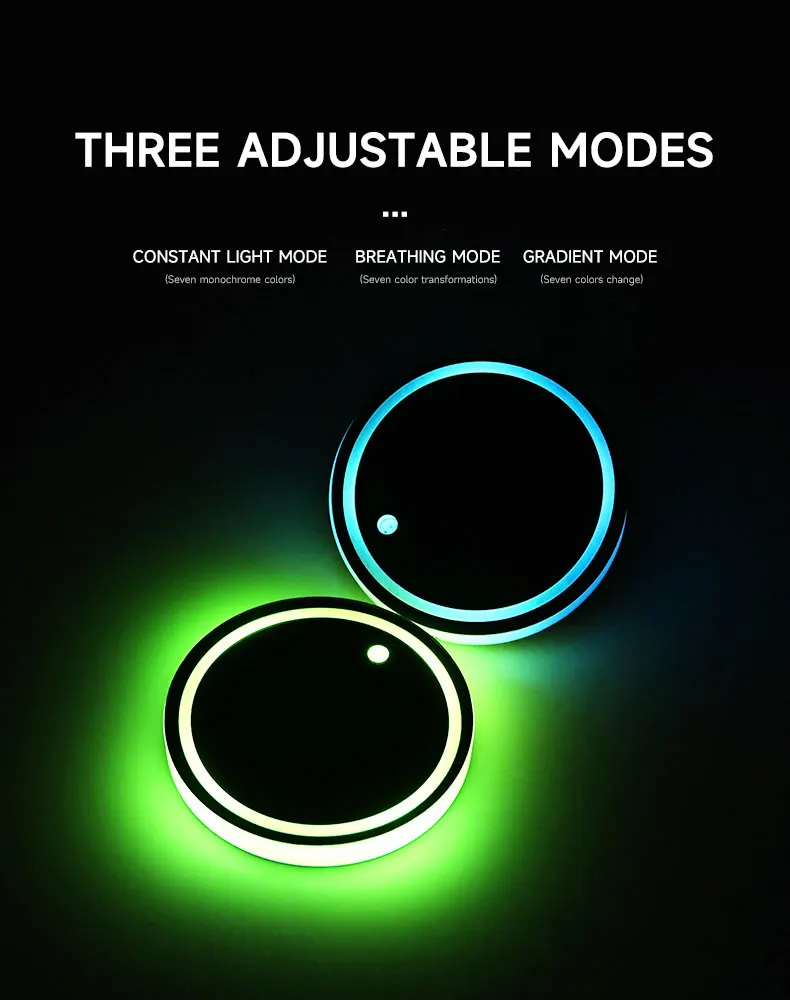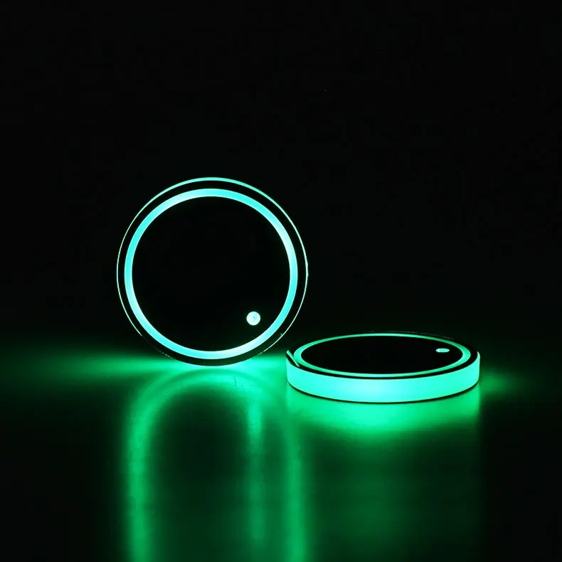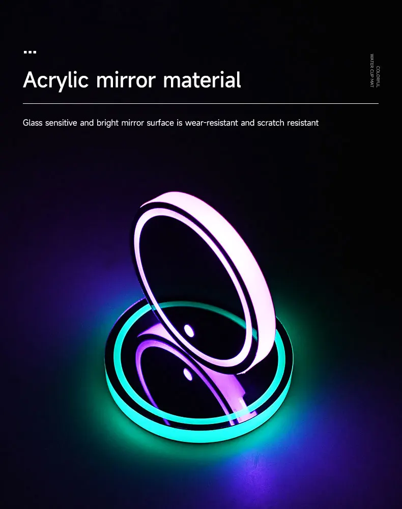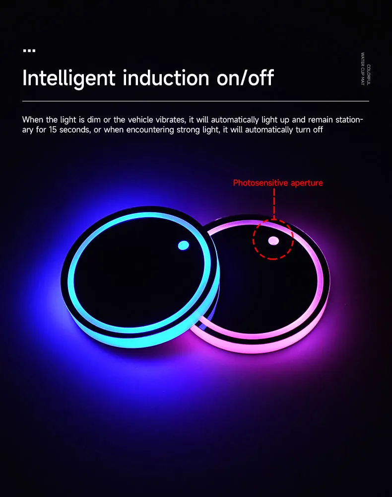 2pcs 7 Colors Car LED Cup Holder Light Mats Colorful Car Coasters Bottle Light Sensor Vibration Atmosphere Light LED Cup Holder