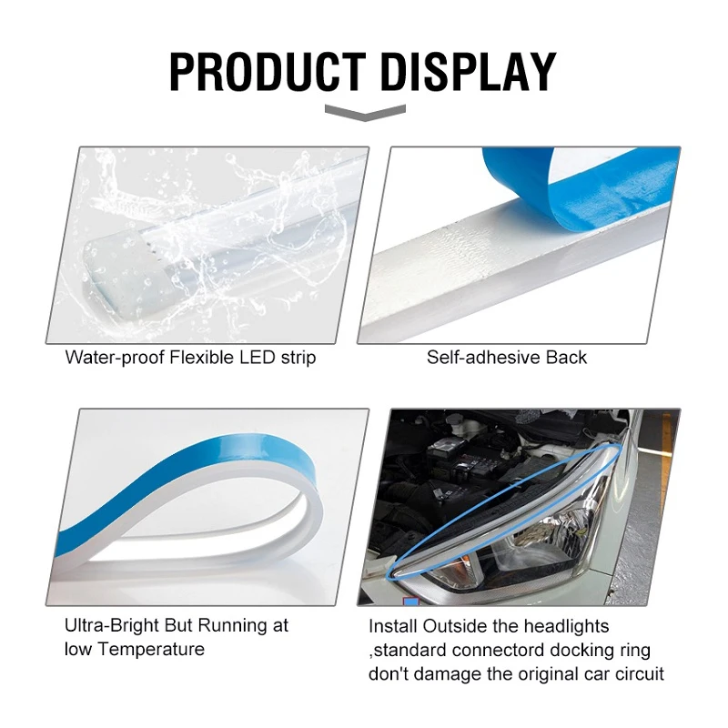 2pcs Car Sequential Flowing Daytime Running Light Scan Waterproof DRL Car LED Light Strip Turn Signal Lights For Headlight 12V