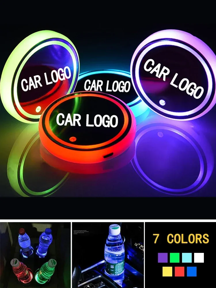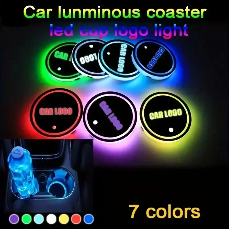 2Pcs Logo LED Cup Holder Light Car Coaster RGB Luminous USB Rechargeable Coaster Night Drink Accessories Atmosp amabilis Tools
