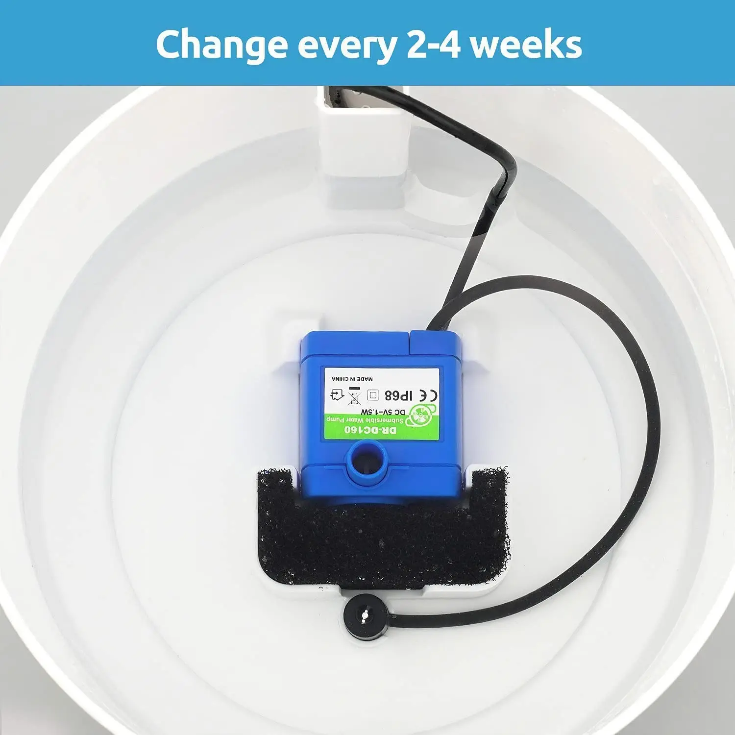 【Recommendations Replacement】To prevent the activated carbon dust (which will not harm your pets) from shedding into the water, please soak the filter in water for 2 minutes and rinse it thoroughly under running water before use.1 to 2 weeks in summer and 2 to 4 weeks in winter.If multiple cats are using the fountain, more frequent replacement will be necessary.