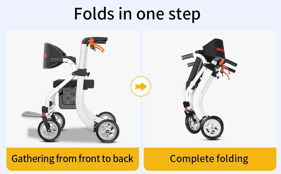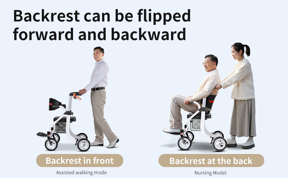 4-in-1 Mobility Wheelchair Combination No Installation Design Walkers for Seniors Foldable Walker with Seat Rollator Walker