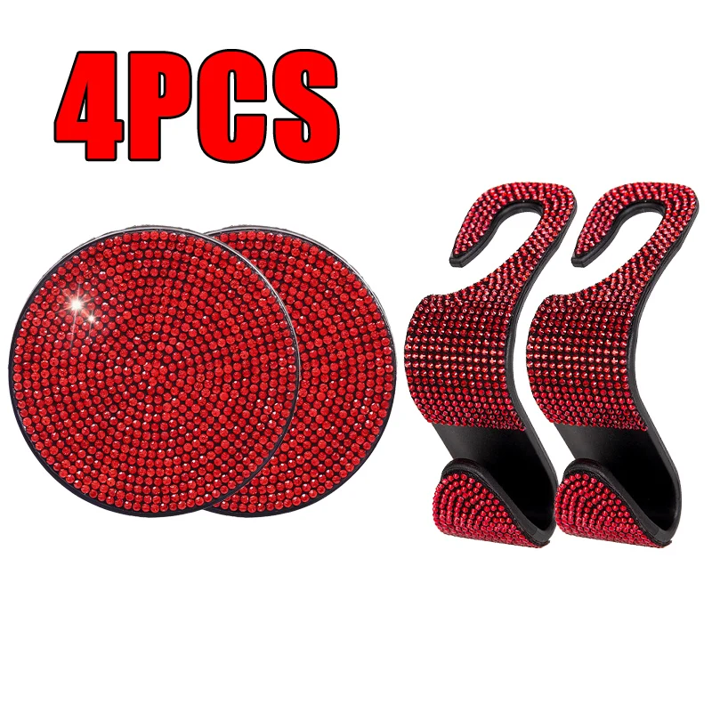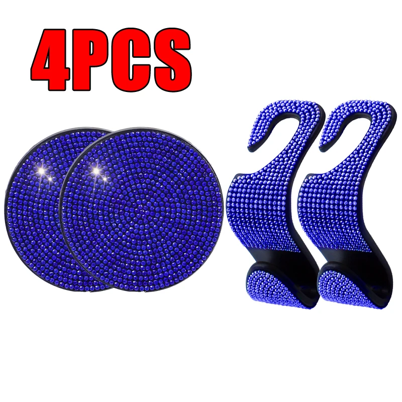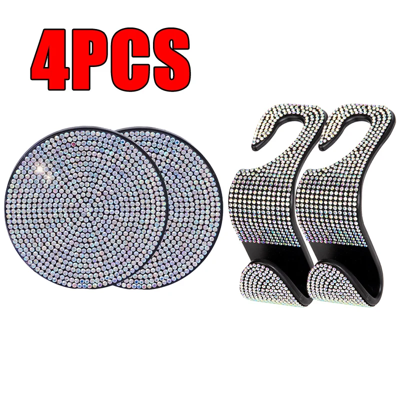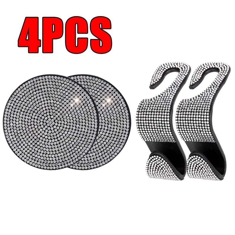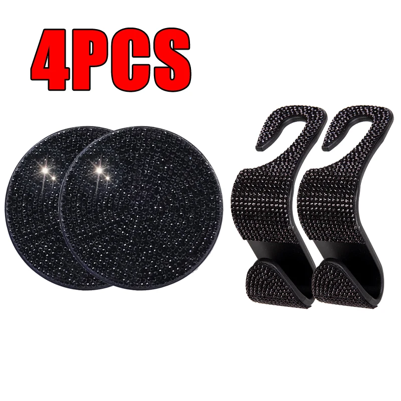 4 pcs/set Car Interior Accessories Multifunction Diamond Auto Seat Back Hooks Non-slip Coaster Universal Car Hook Water Cup Mat