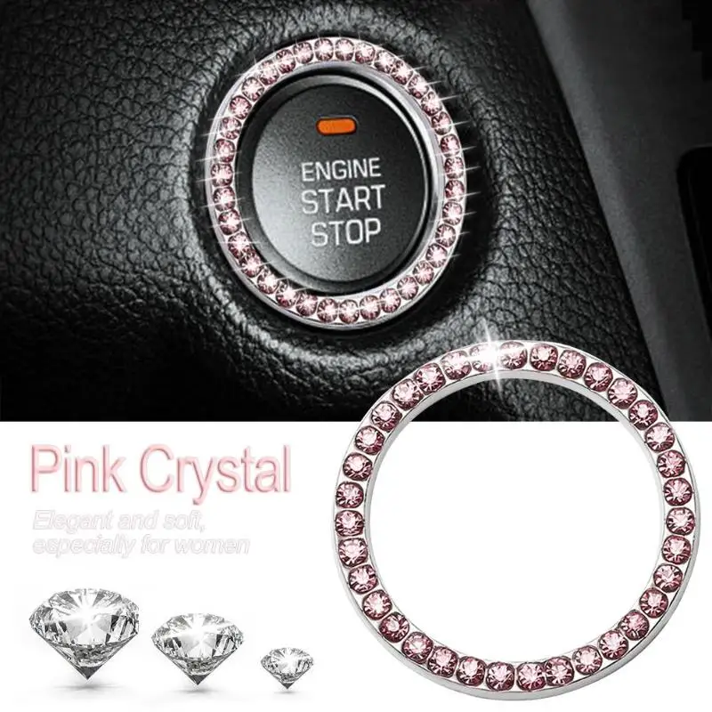 40mm/1.57" Auto Car Bling Decorative Accessories Automobiles Start Switch Button Decorative Diamond Rhinestone Ring Circle Trims