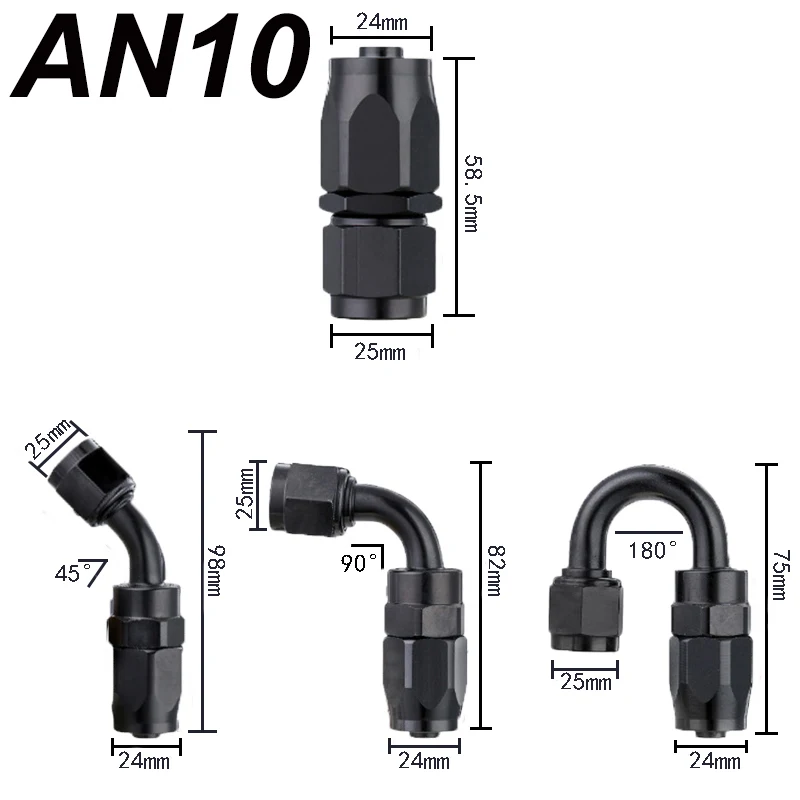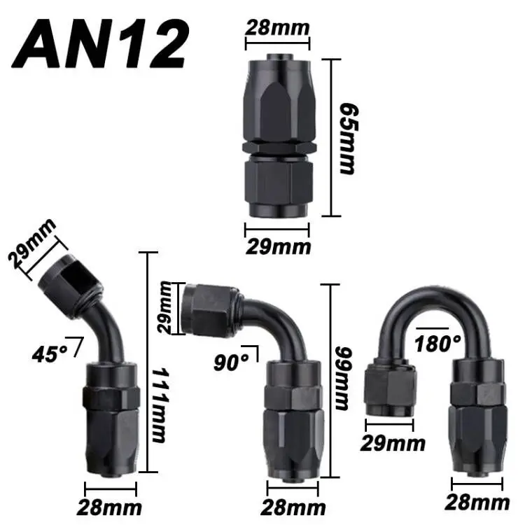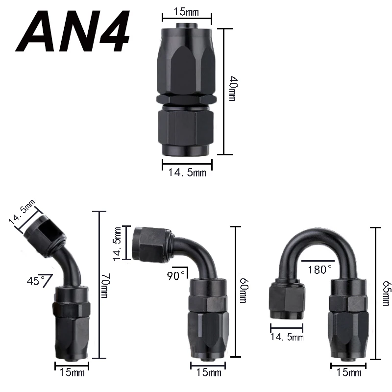 4X Universal AN4 AN6 AN8 AN10 AN12 Straight 45 90 120 180 Degree Oil Fuel Swivel Hose End Fitting Oil Hose End Adaptor Kit Black