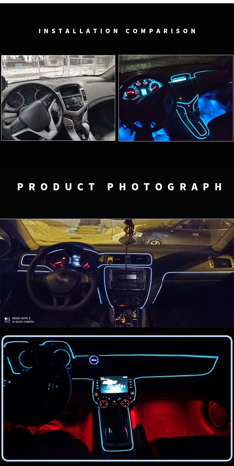 • Cold light line tube :The LED strip emits a cold light, creating a unique and stylish atmosphere in your car's interior.