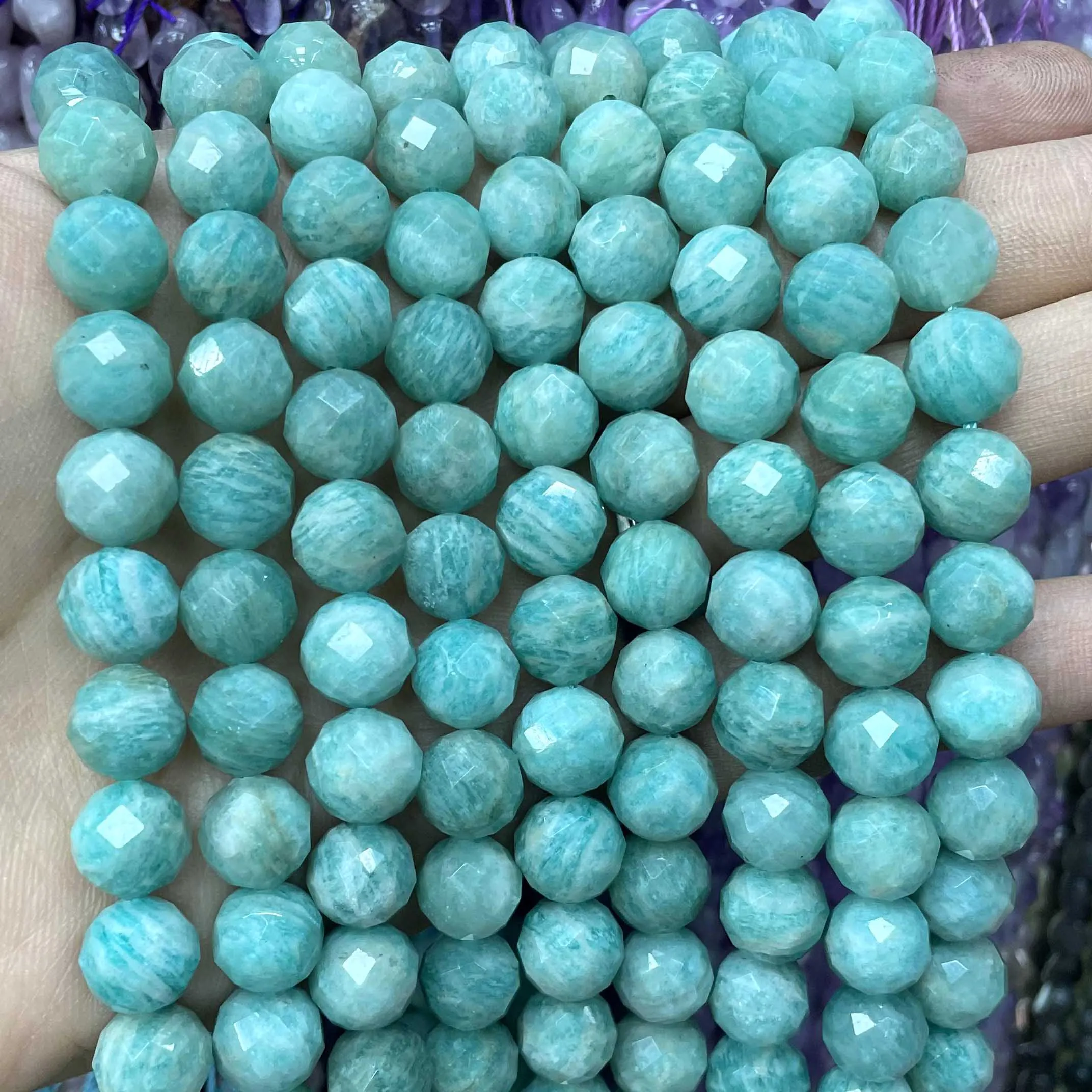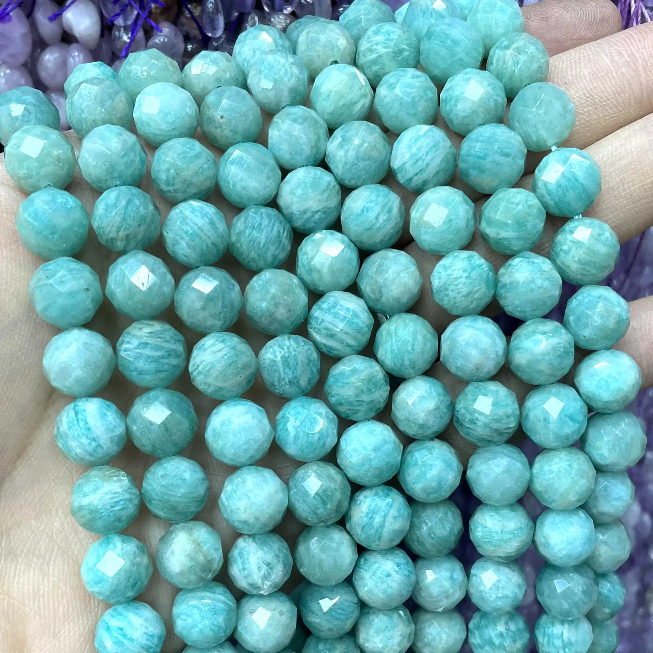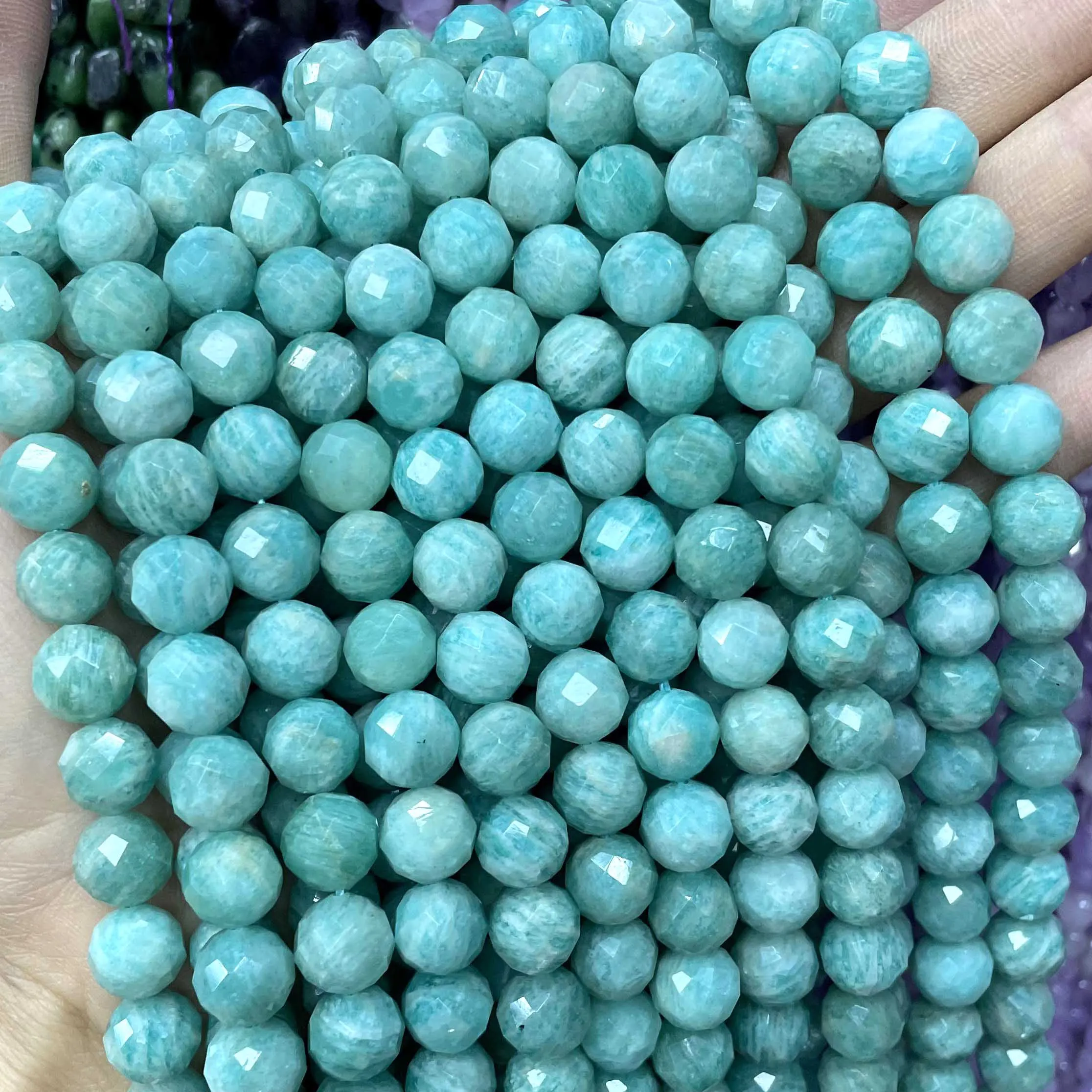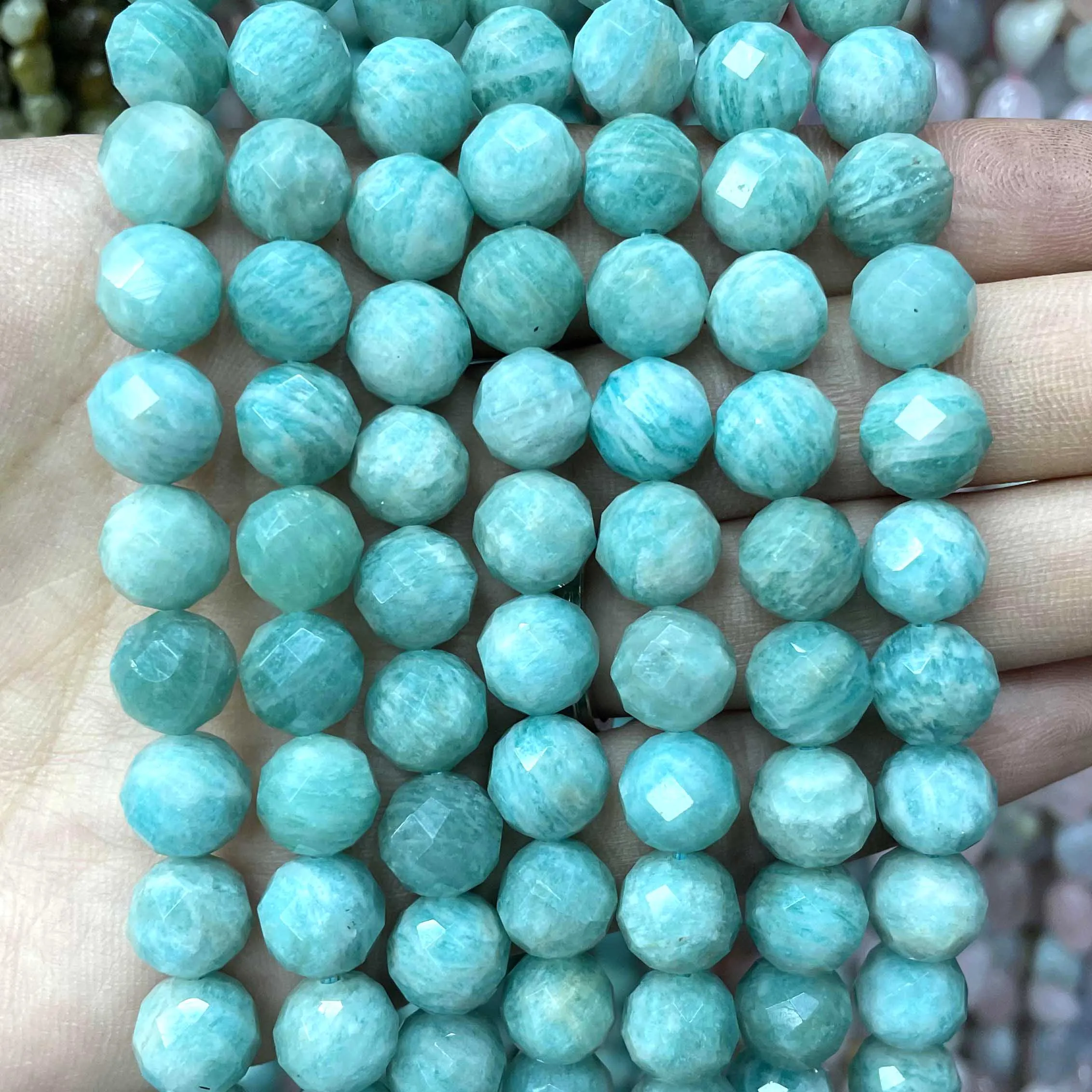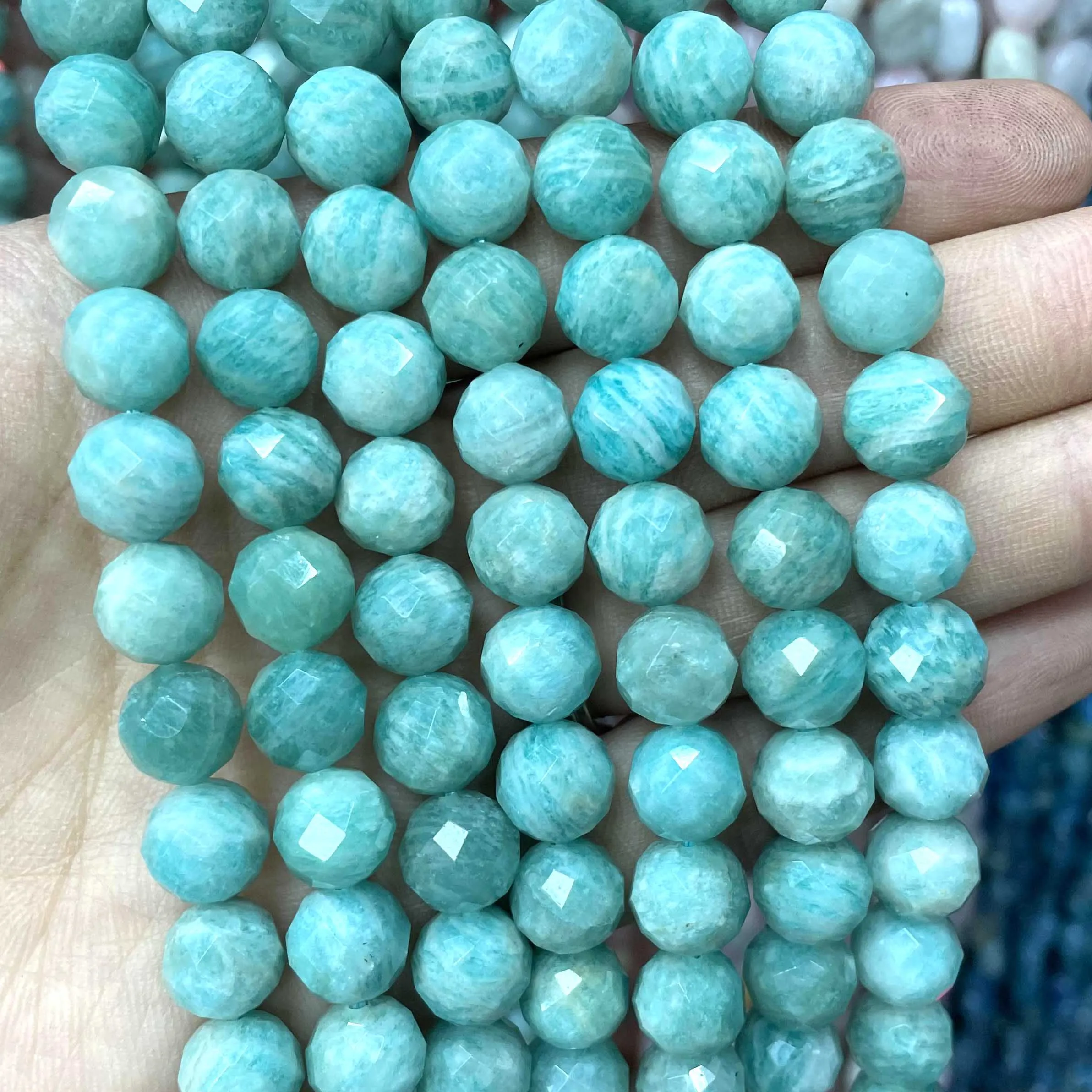 6/8/10MM Natural Faceted Amazonite Round Gem Stone Spacer Beads For Jewelry Making DIY Bracelet Necklace Accessories 7.5''inches