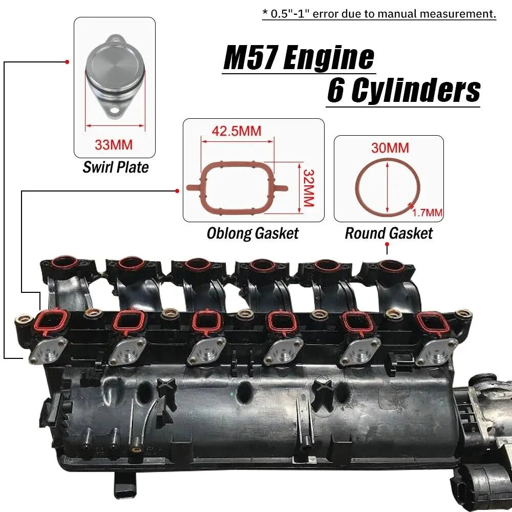 6X33mm 6X22mm Auto Replacement Parts for BMW 05+ Swirl Blanks Flaps Repair Delete Kit with Intake Gaskets Key Blanks