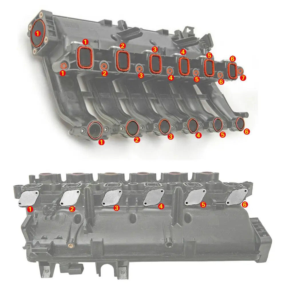 For BMW's suffer a common issue with the swirl flaps in the inlet manifold. The Screws holding the butterflies can come loose can cause severe damage to your engine. It's a well known issue that has been covered many times on the for BMW forums & magazines. The easiest way to prevent this damage occurring to your engine is to replace these swirl flap bungs with these. With intake manifold gaskets kit.