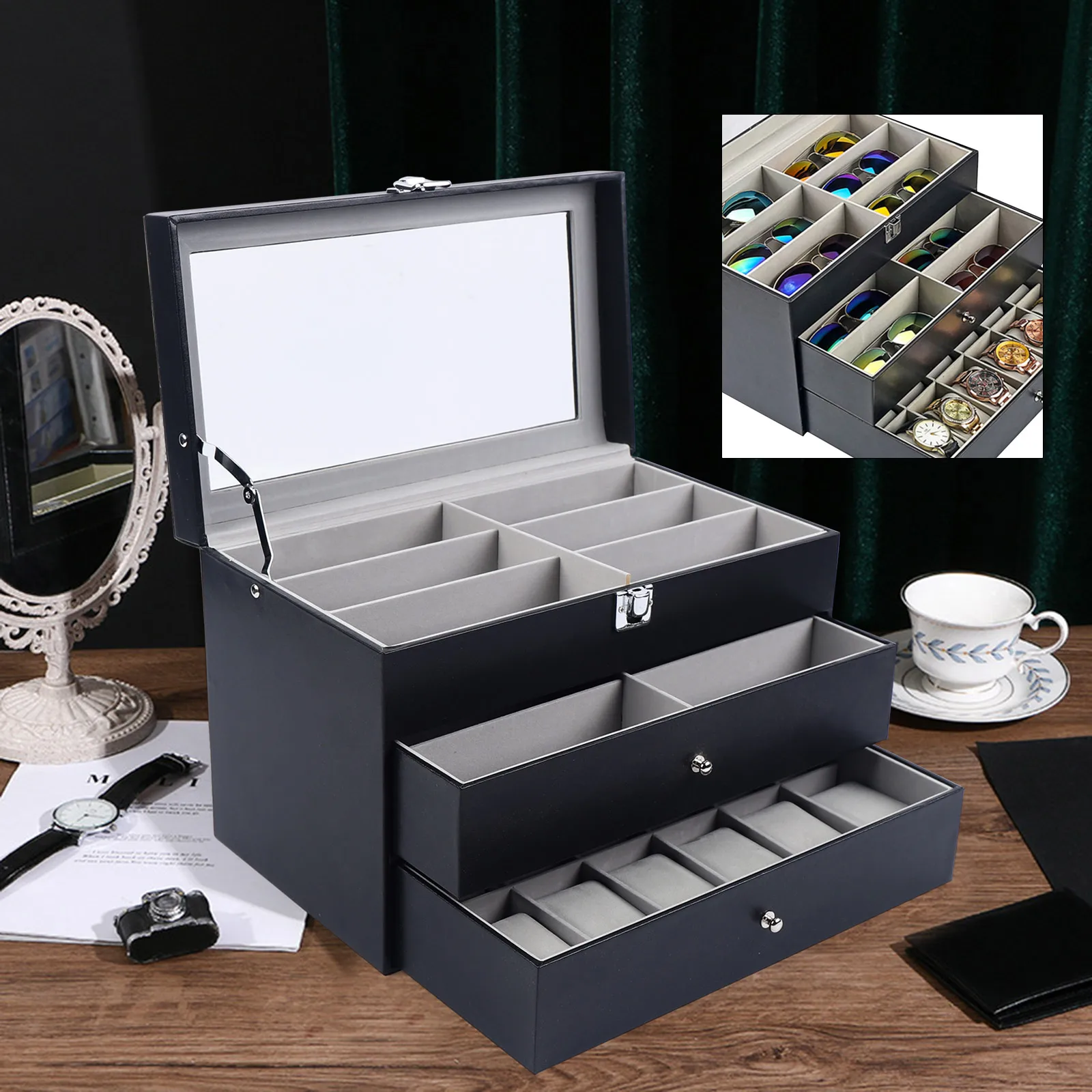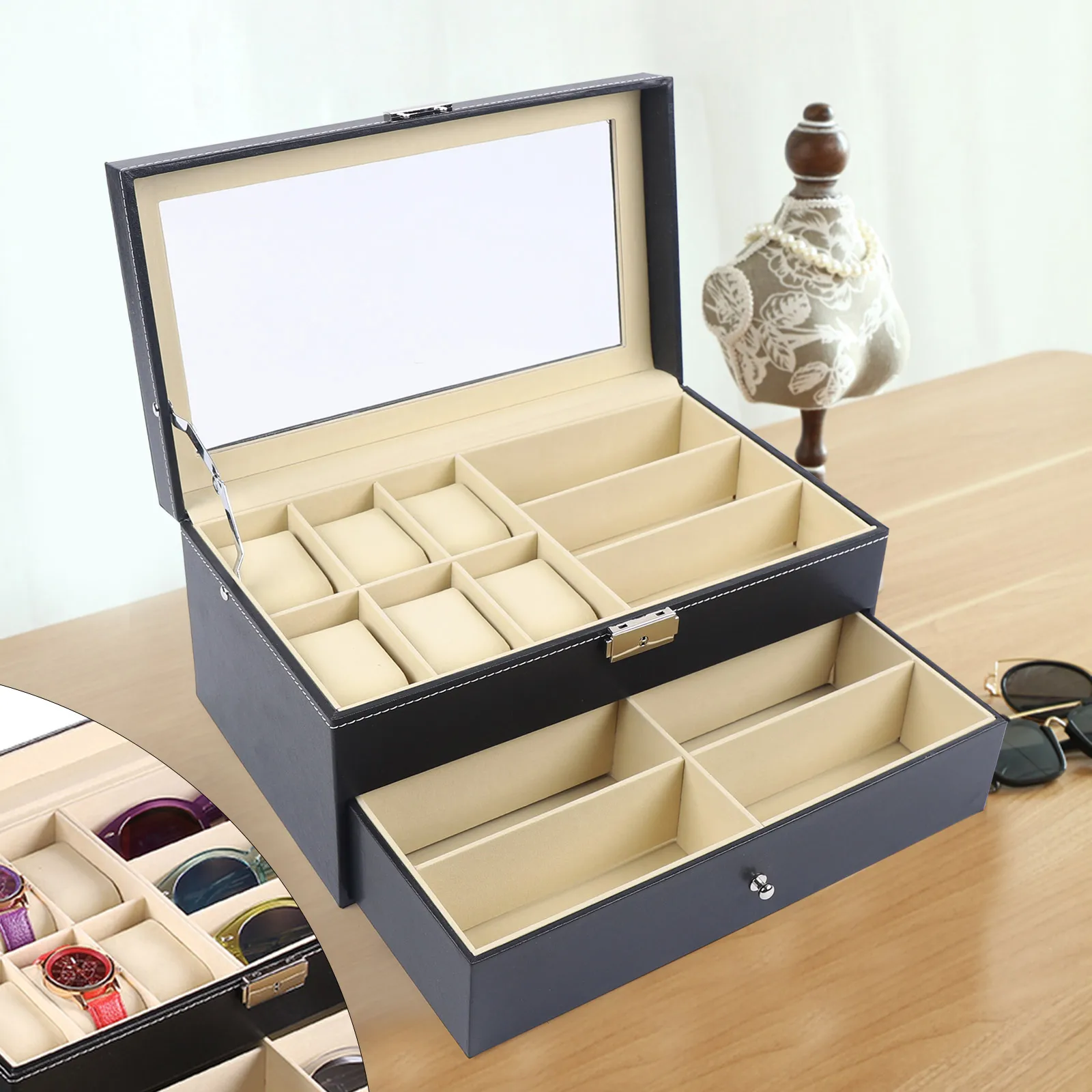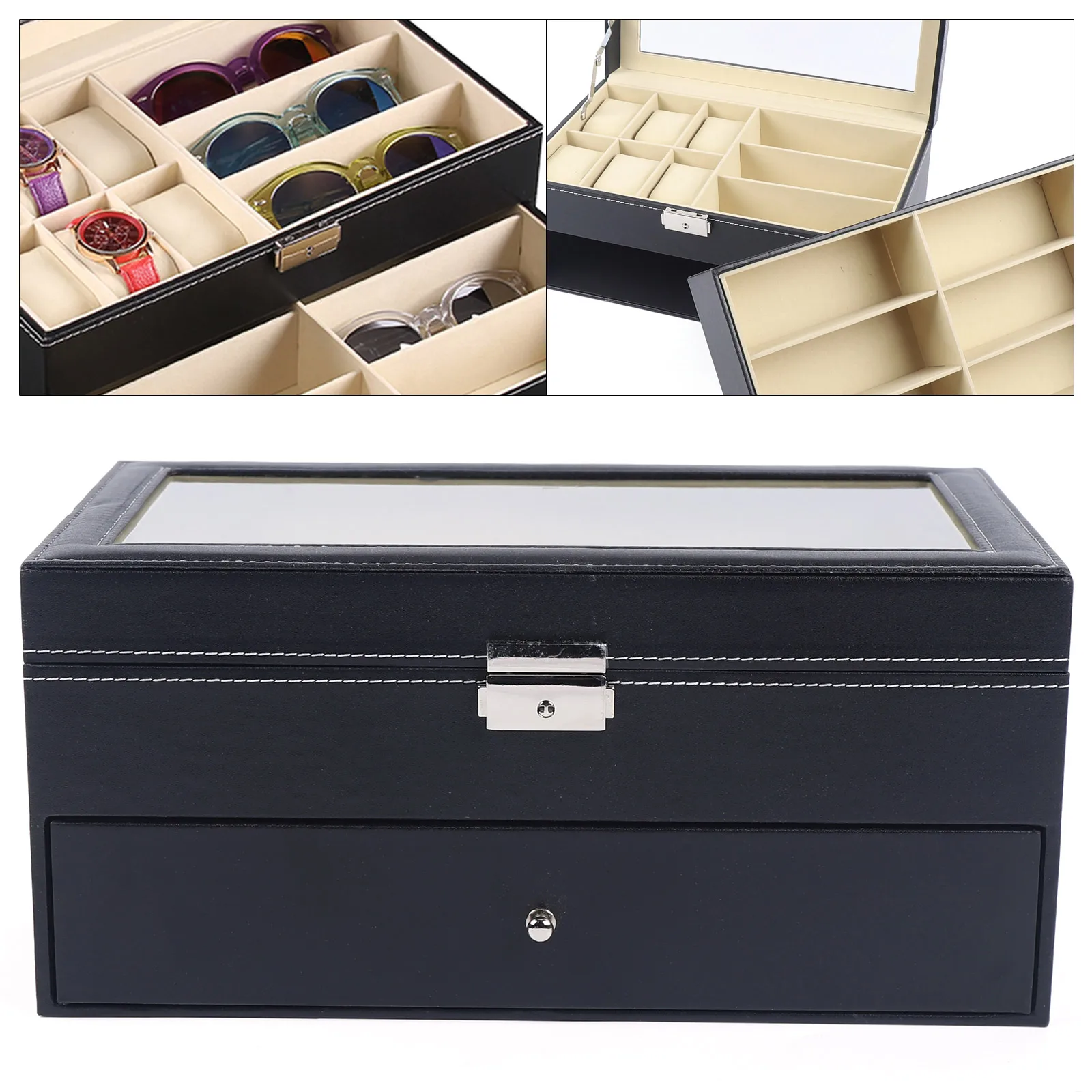 9/15/24 Grid Jewelry Collection Storage Holder Box Leather Watch Glasses Display Case Sunglasses Storage Holder