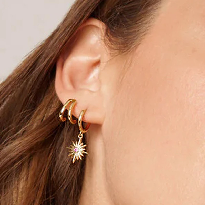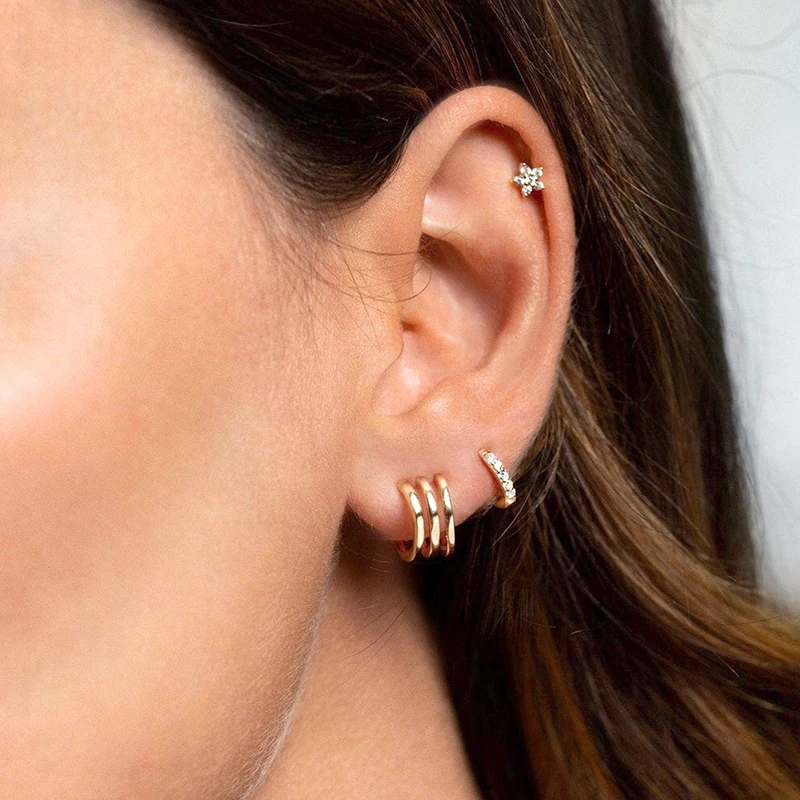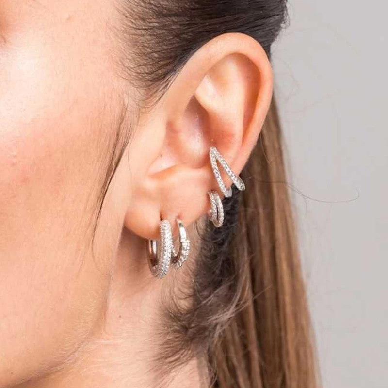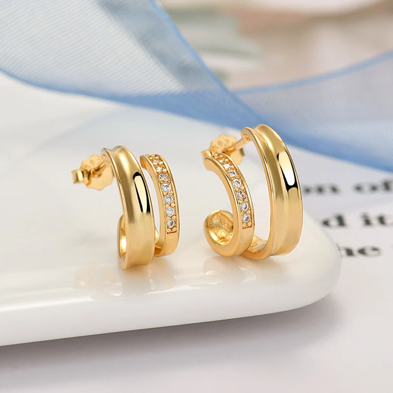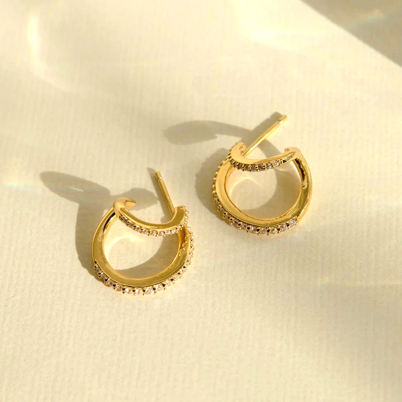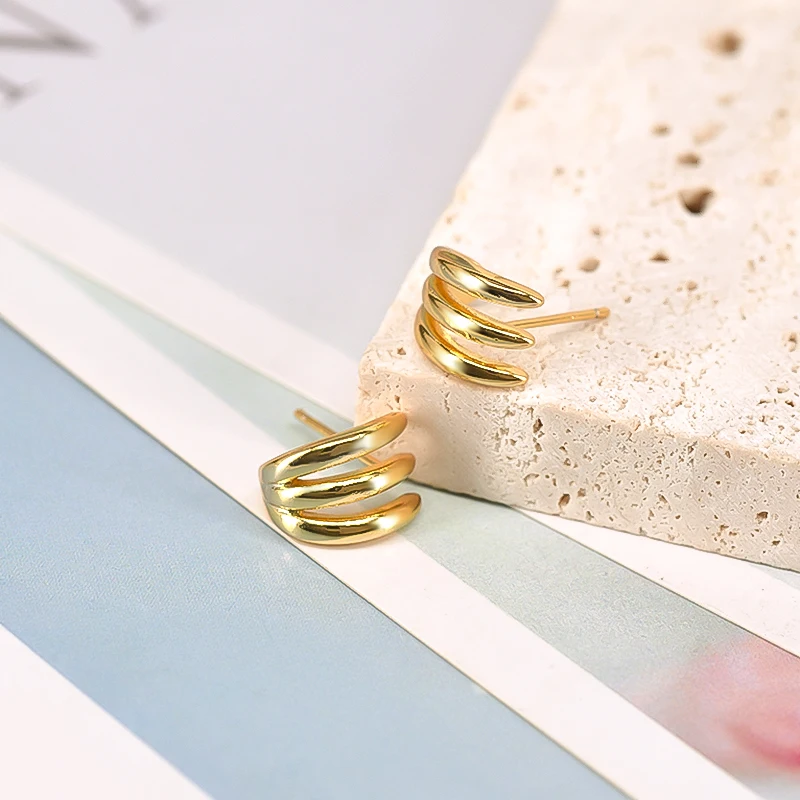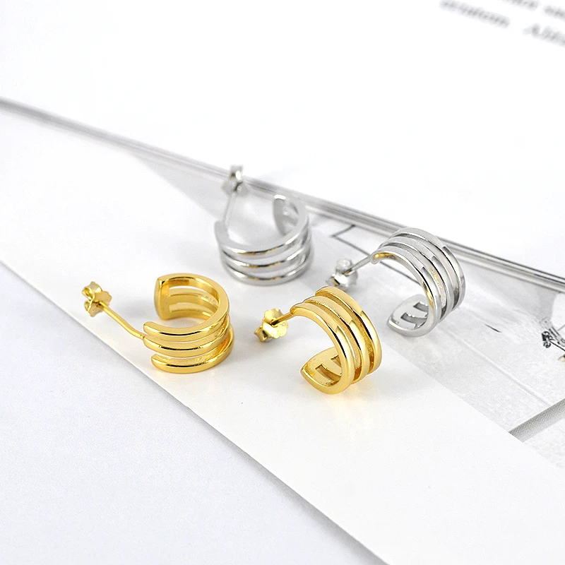 925 Sterling Silver Ear Needle Vintage C Shape Earrings For Women Triple Open Circle Piercing Stud Earrings Fashion Jewelry