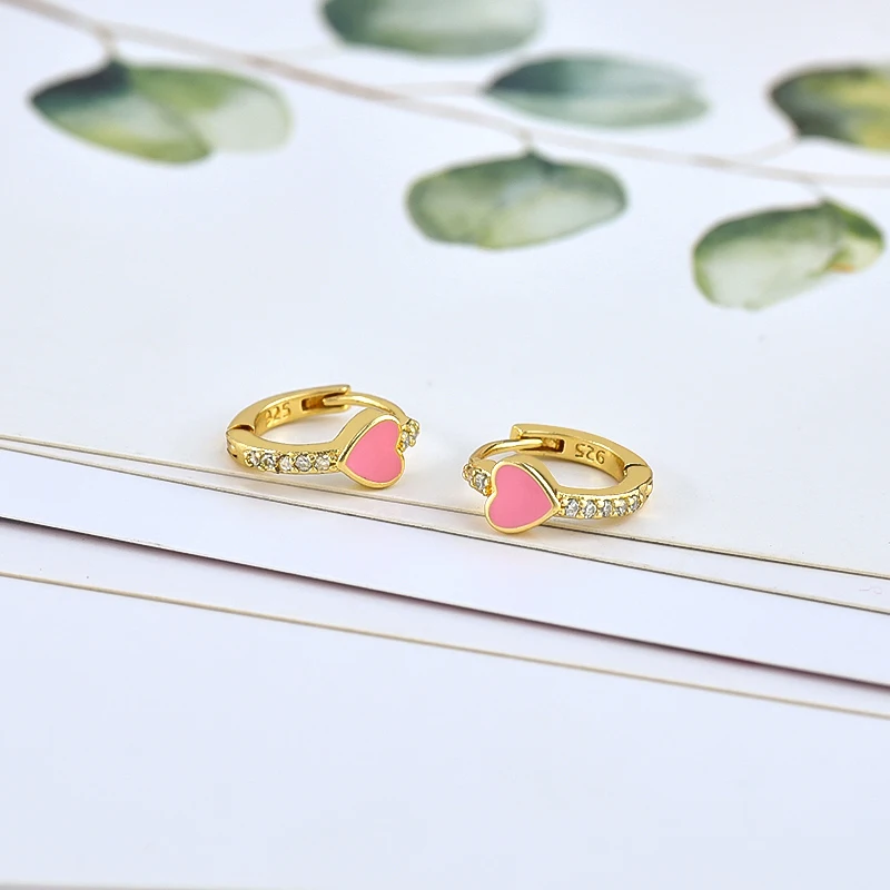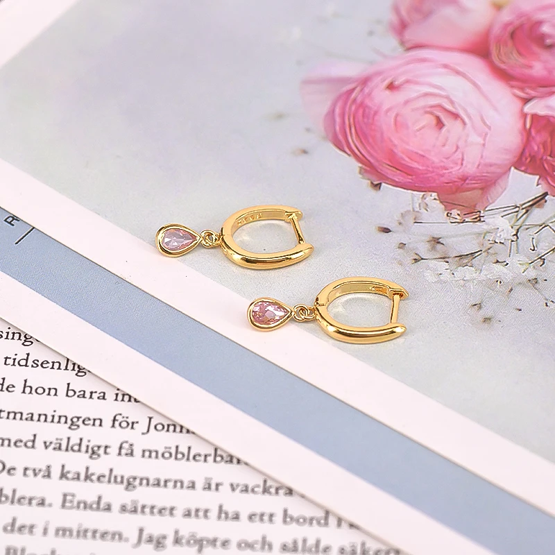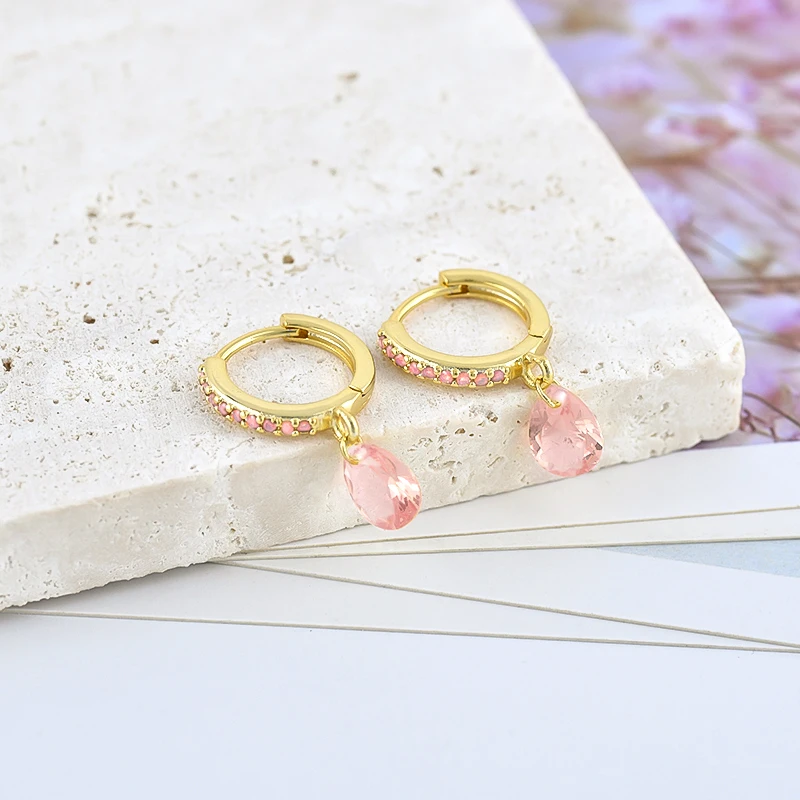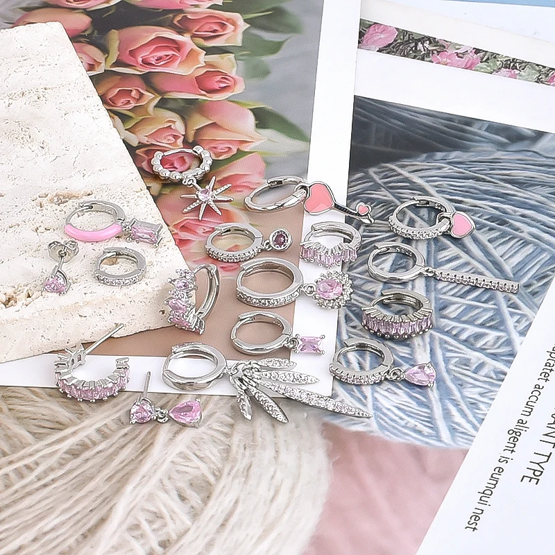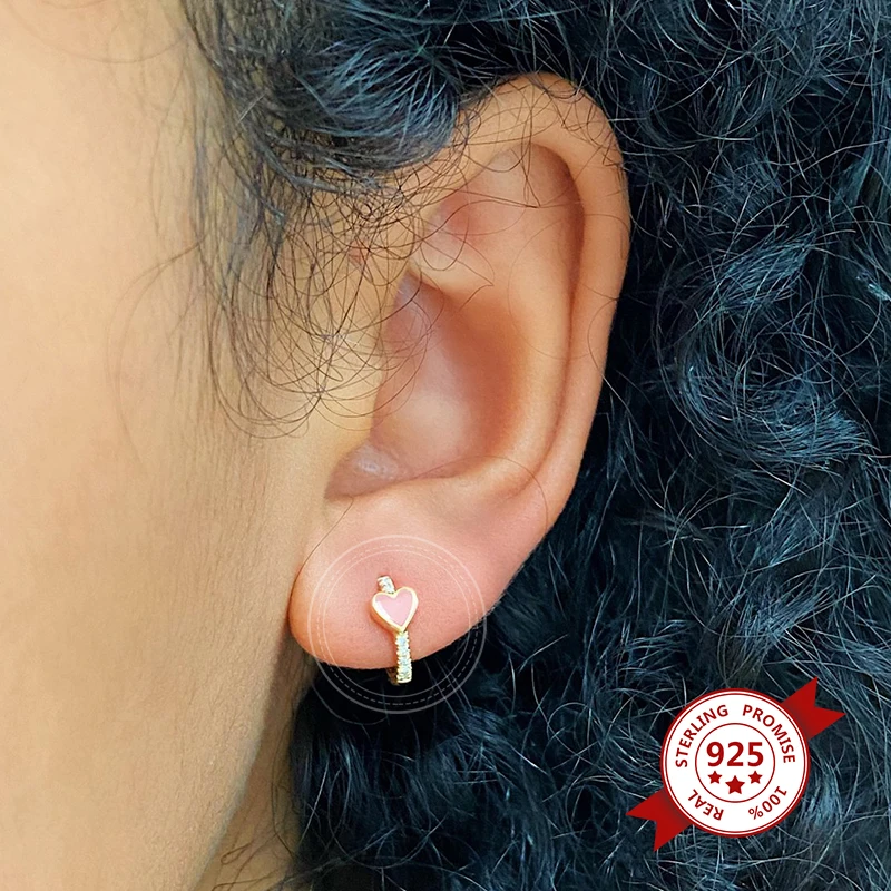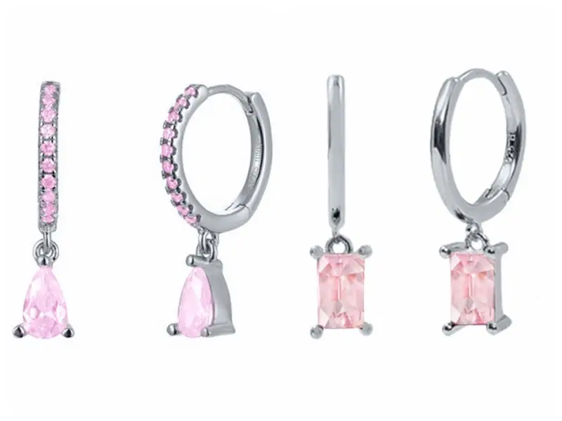 925 Sterling Silver Needle Silver Pink Heart Water Droplet Pendant Hoop Earrings for Women Multiple Styles Earrings Fine Jewelry
