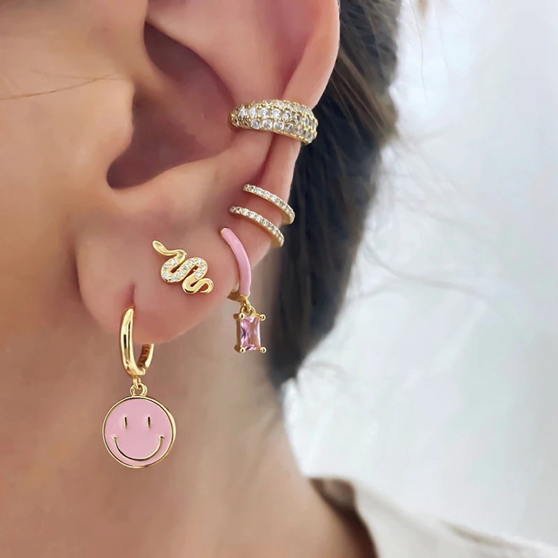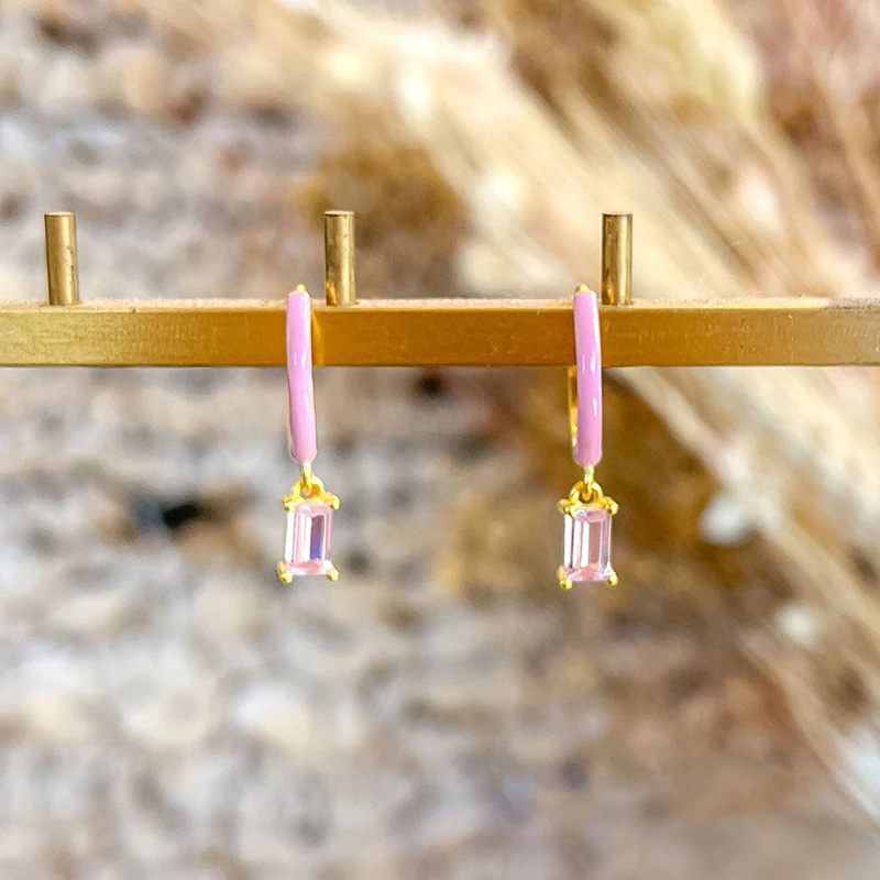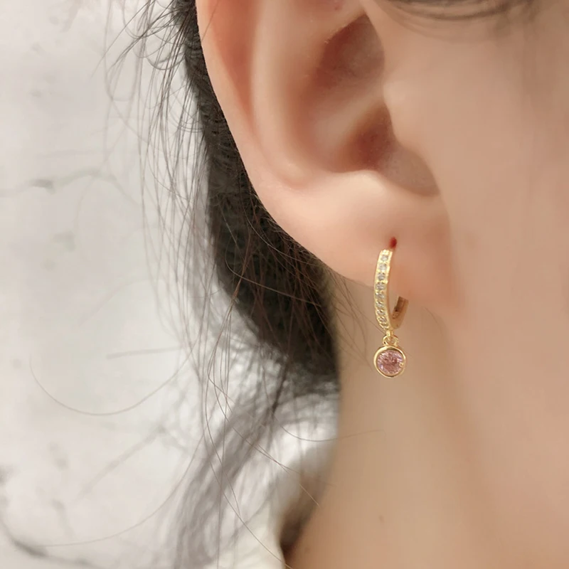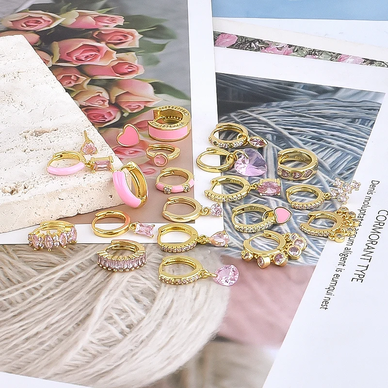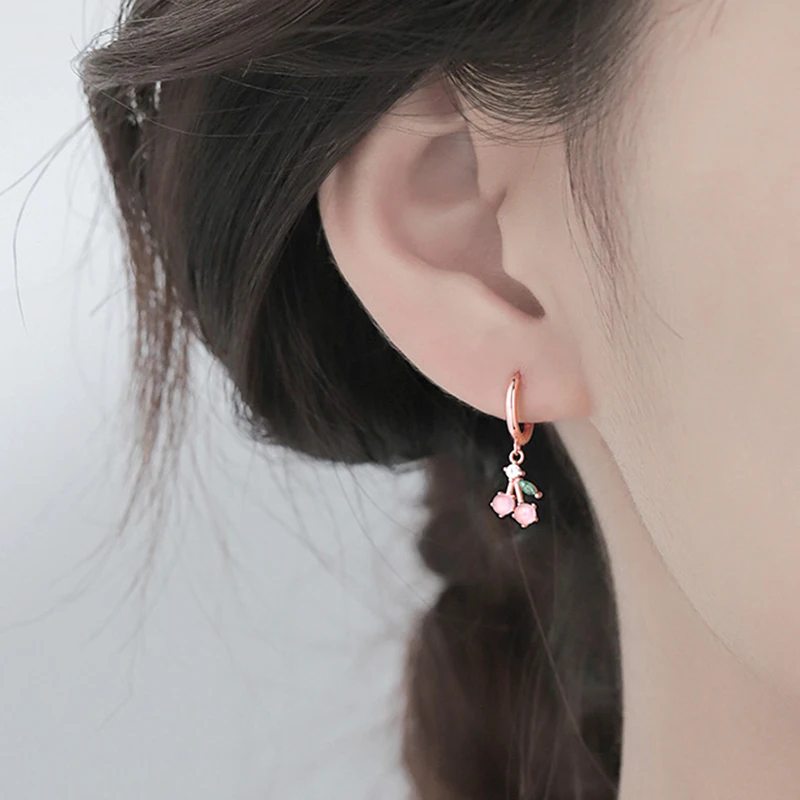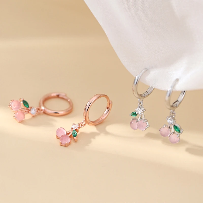925 Sterling Silver Needle Silver Pink Heart Water Droplet Pendant Hoop Earrings for Women Multiple Styles Earrings Fine Jewelry
