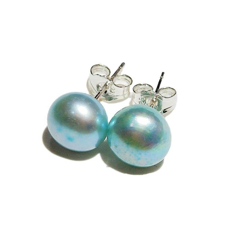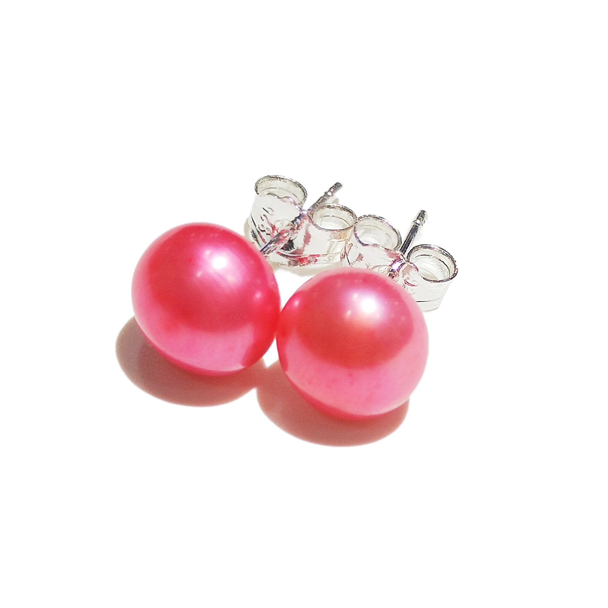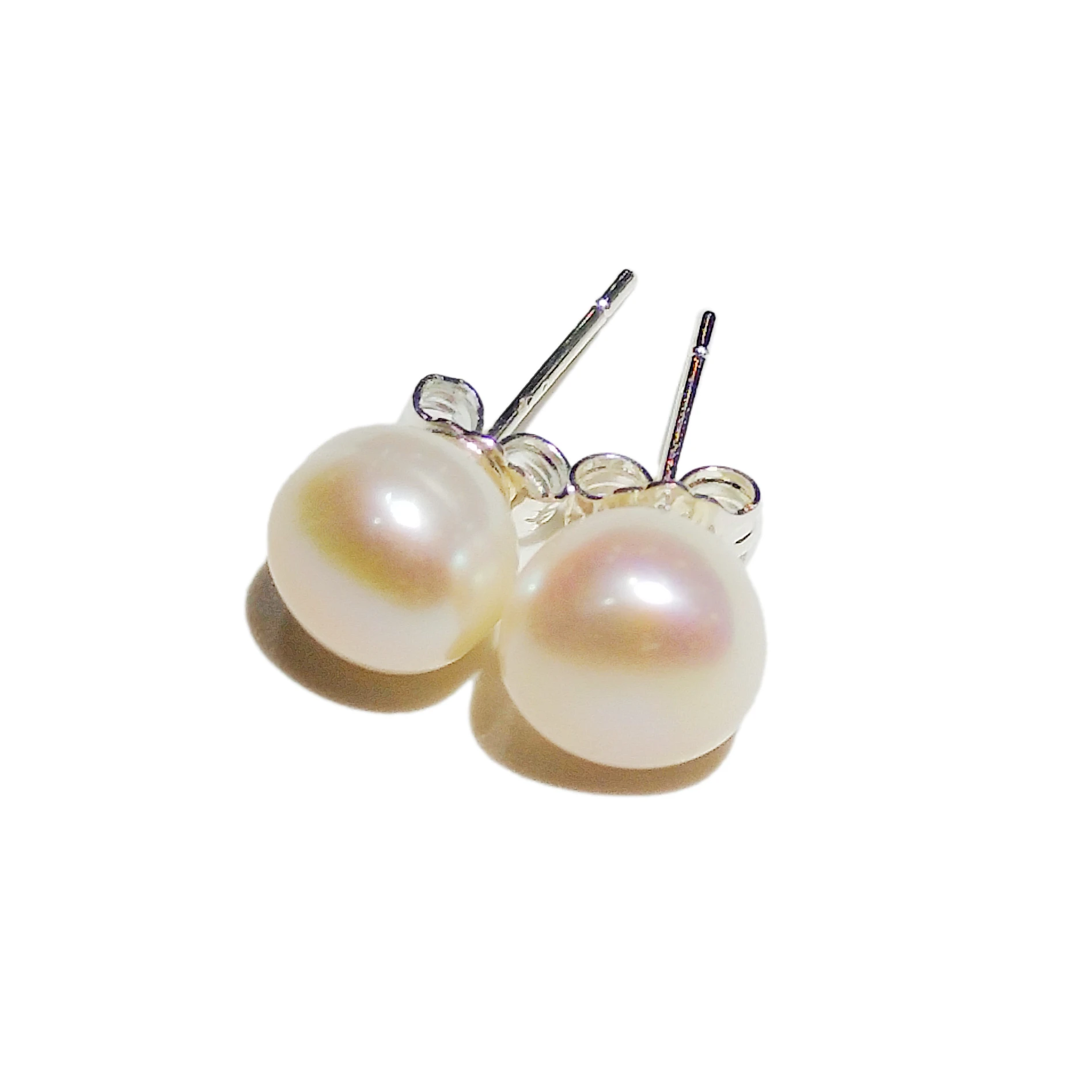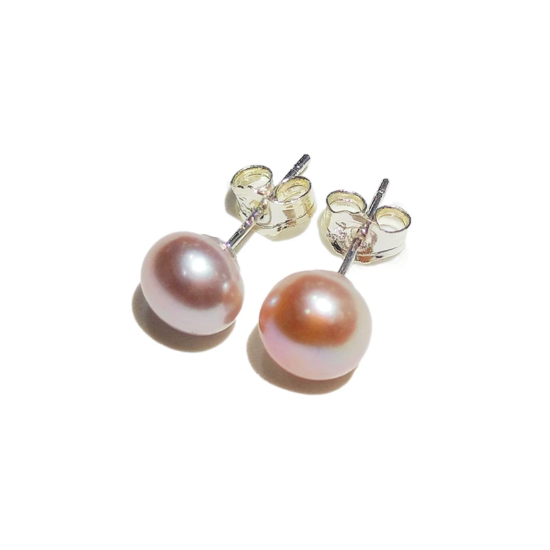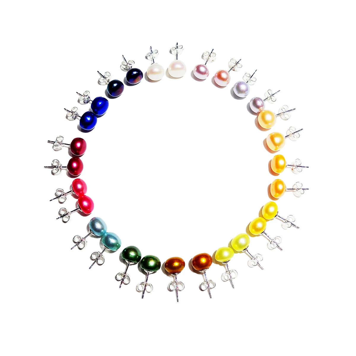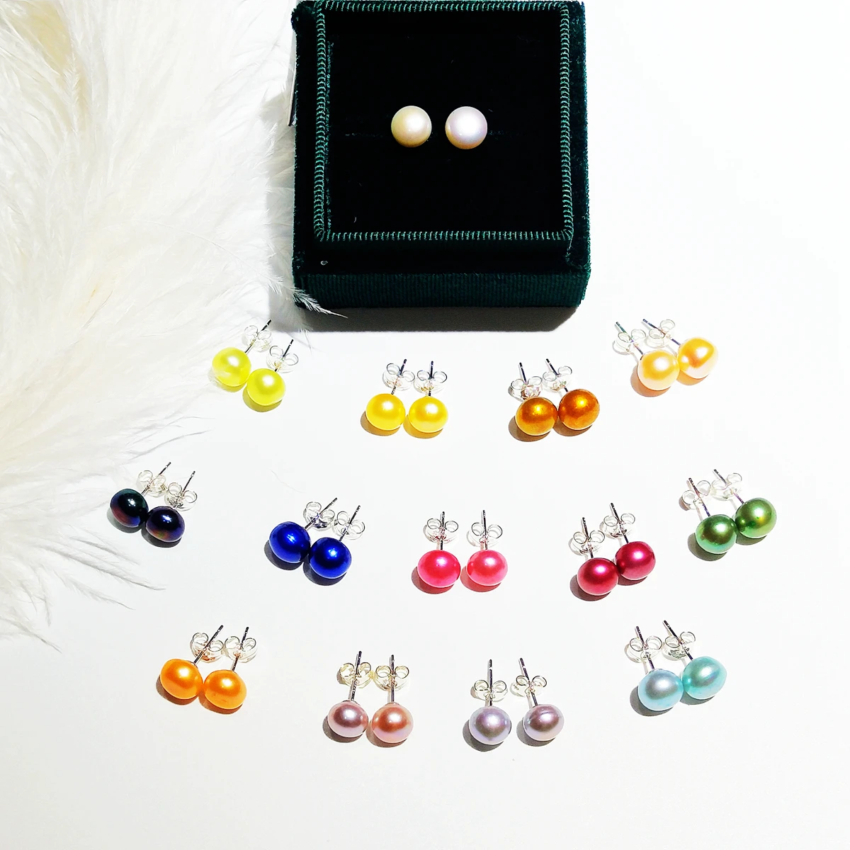 925 Sterling Silver Stud Pearl Earring 7-8mm High Luster White Pink Blue Pearl Earrings for Valentine's day Mother's Day Gift