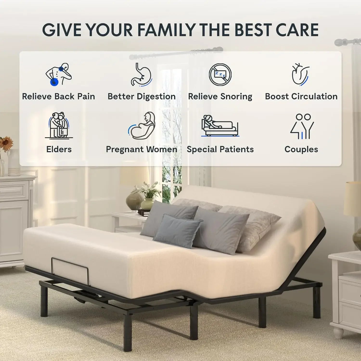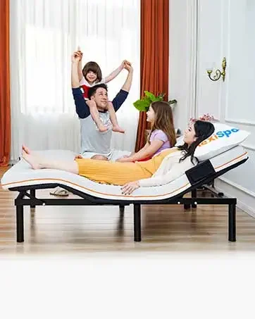 FLEXISPOT adjustable bed base not only helps you relieve physical pain and stress but also turns your bedroom a relaxing haven and your family can sail away in a sea of dreams with peace of mind.