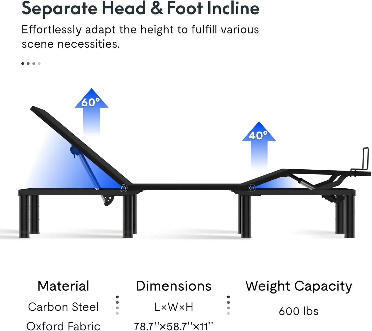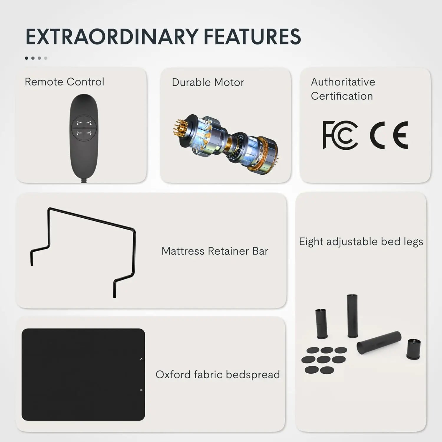 Adjustable Bed Frame Base Queen,One-Person Transport and Assembly,Adjustable Bed Legs,Oxford Fabric Bedspread