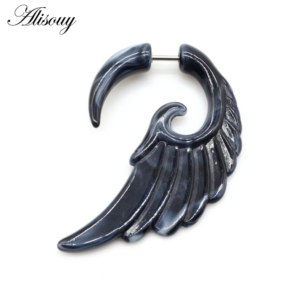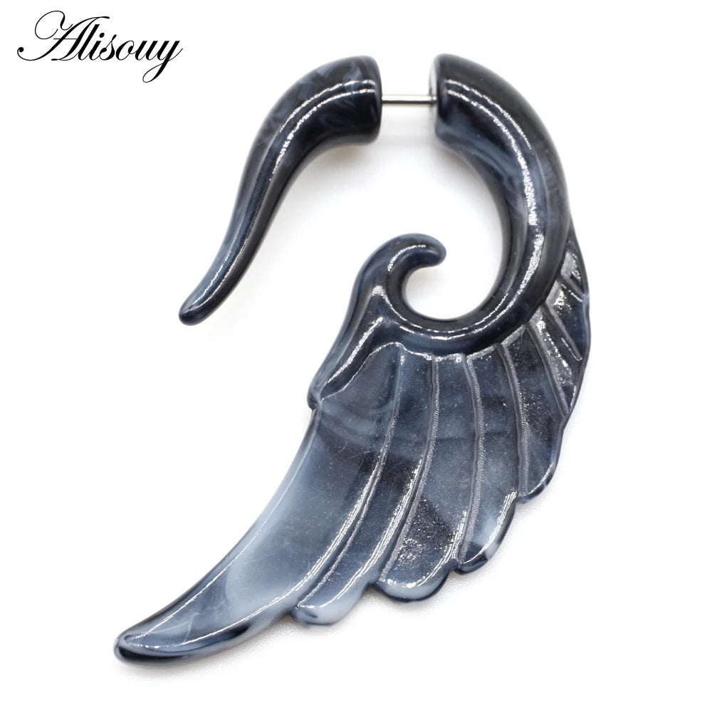 Alisouy 2 PC Heteromorphism Shape Gauge Ear Plug Double Color Acrylic Flesh Earring Wing Heart Spiral Body Piercing Jewelry