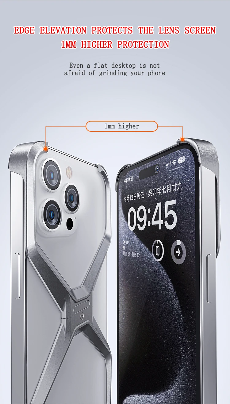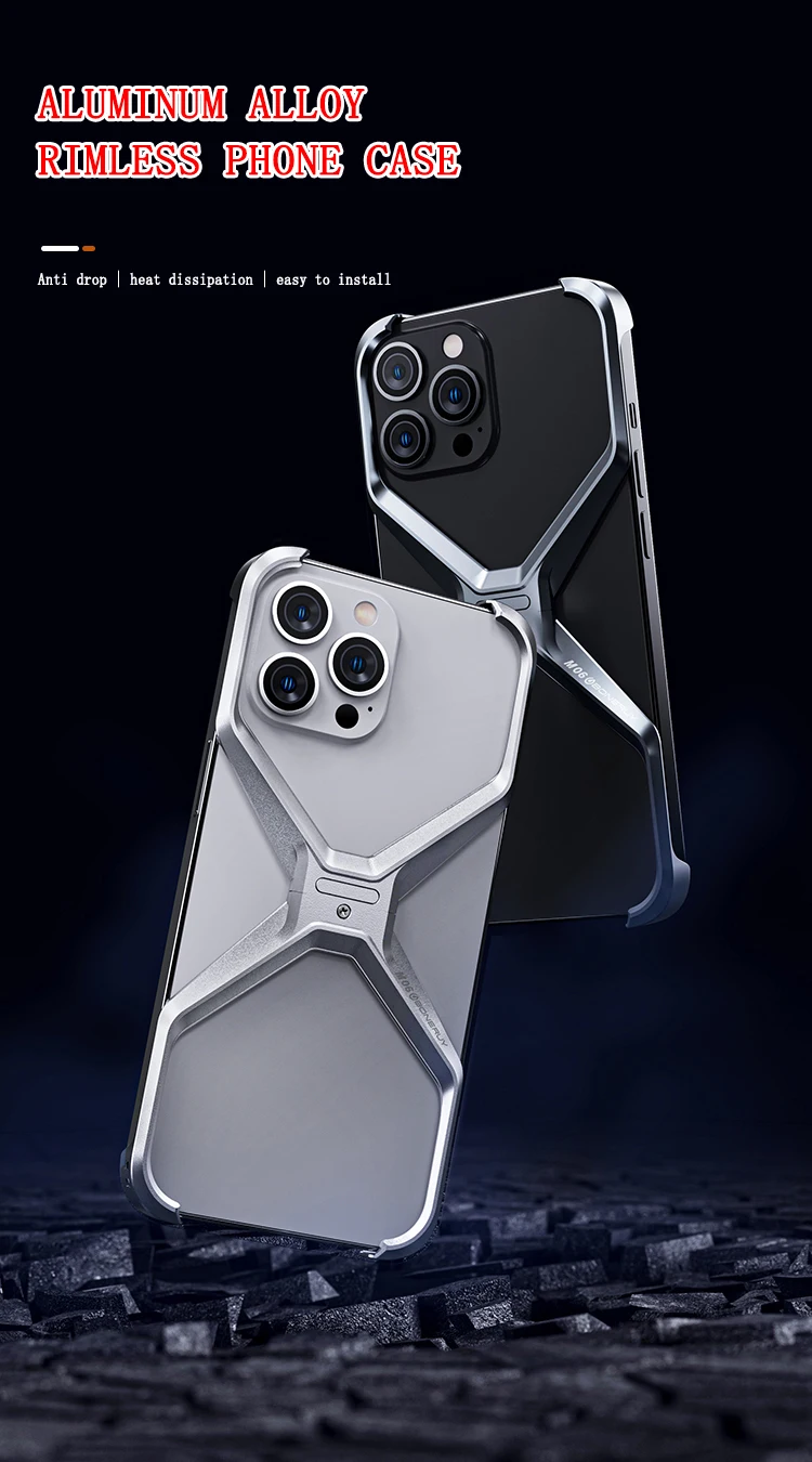 Aluminium Alloy X Shape Removable Frameless Phone Case For iPhone 14 15 Pro Max Metal Heat Dissipation shockproof Armor Cover