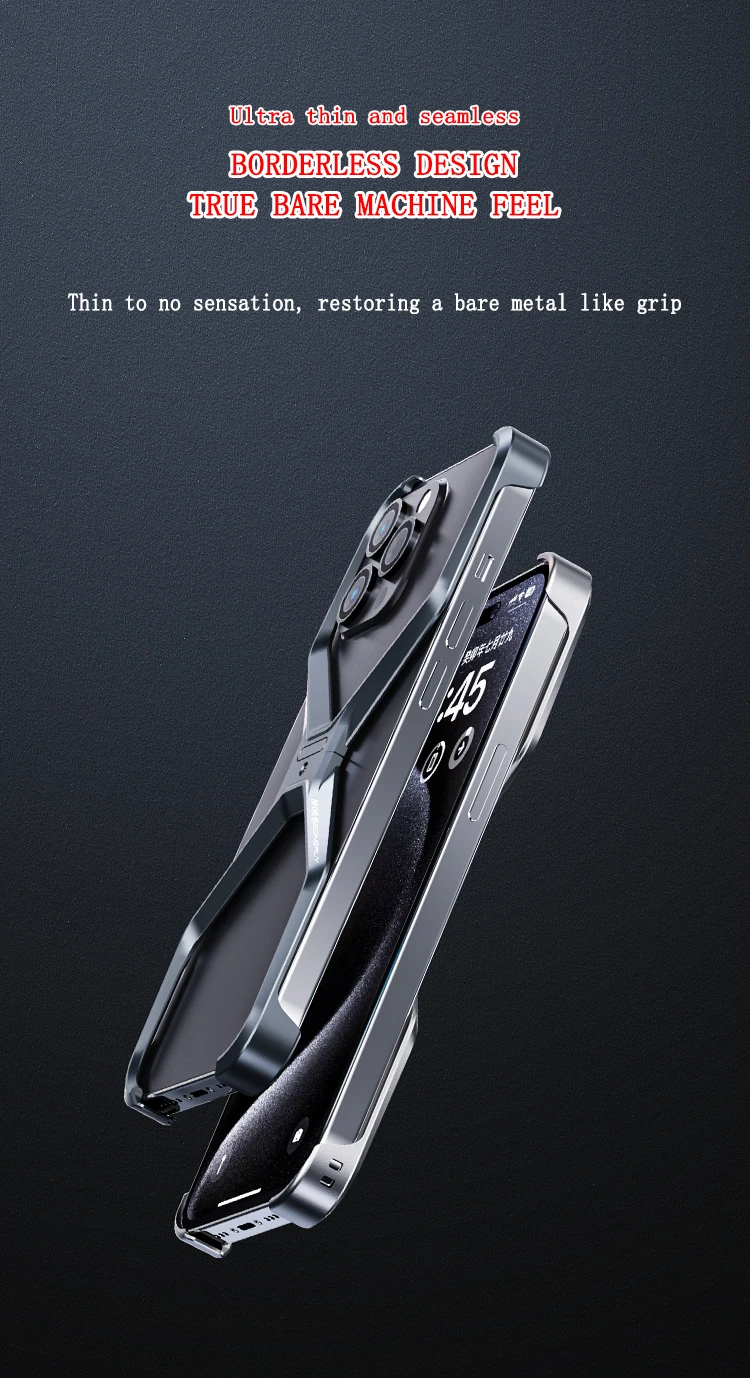 Luxury Metal Rimless Phone Case For iPhone 14 15 Pro Max Detachable Hollow Heat Dissipation Shell Aluminium Alloy Antidrop Cover