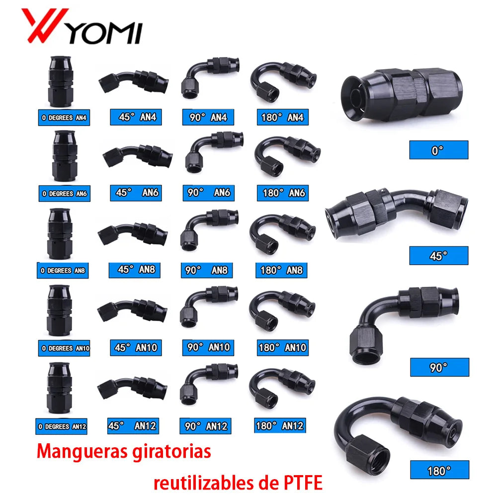 AN4 AN6 AN8 AN10 straight 045 90 180 Degree Reusable Hose End Fitting Adapter For Swivel PTFE Oil Fuel Line Hose End Fitting