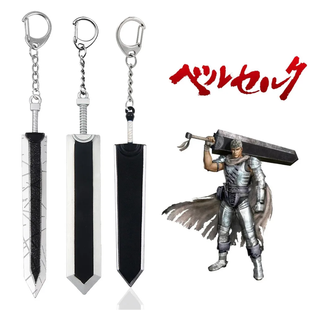 Anime Berserks Keychain Guts Dragon Slashing Sword With Red Logo Key Pendant Cosplay Props For Men Women Keyring Jewelry Gift