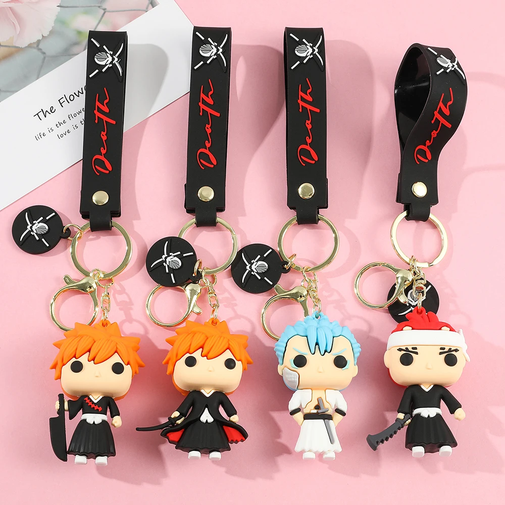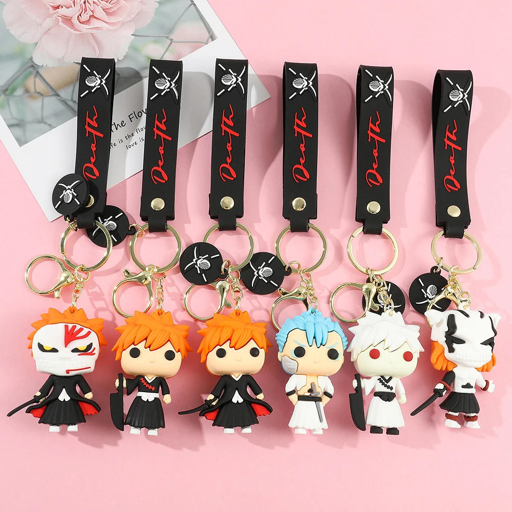 Anime Bleach Keychain Cosplay Kurosaki Ichigo Silicone Pendant Keyring Car Backpack Key Holder Accessories for Fans Quality Gift