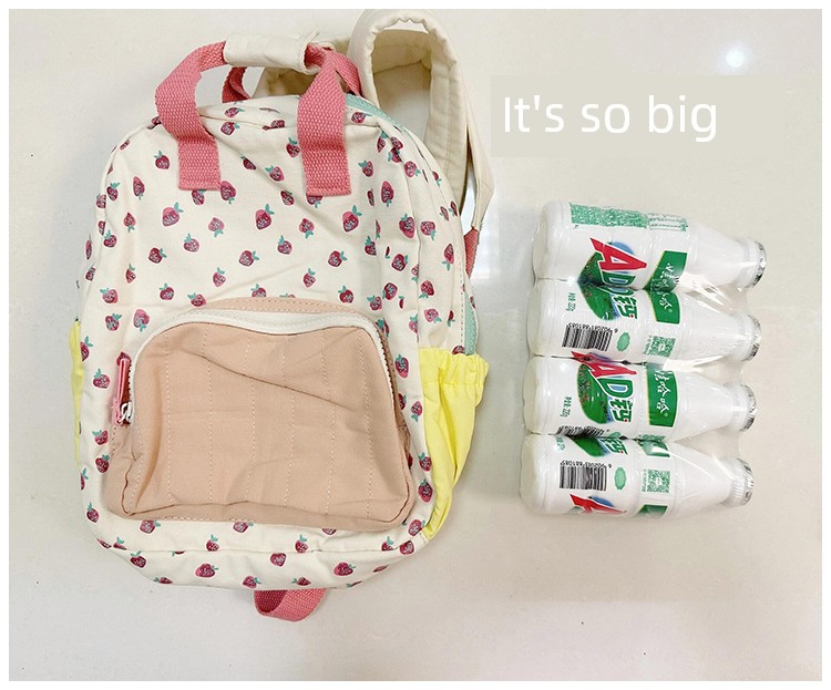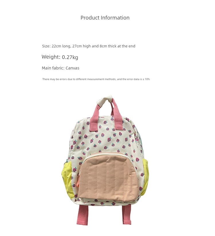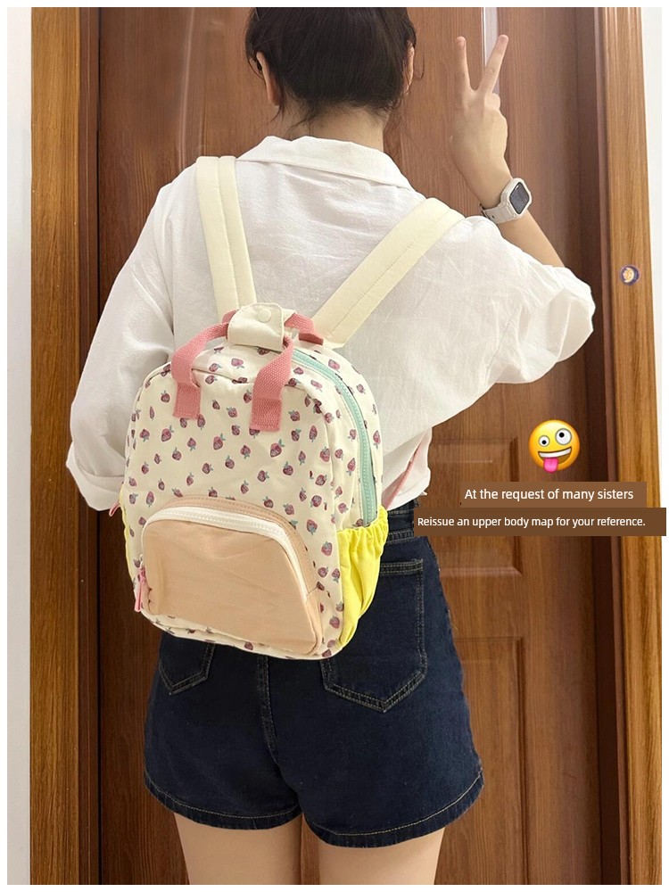 Backpack Strawberry Print Canvas Campus Contrast Color Cartoon