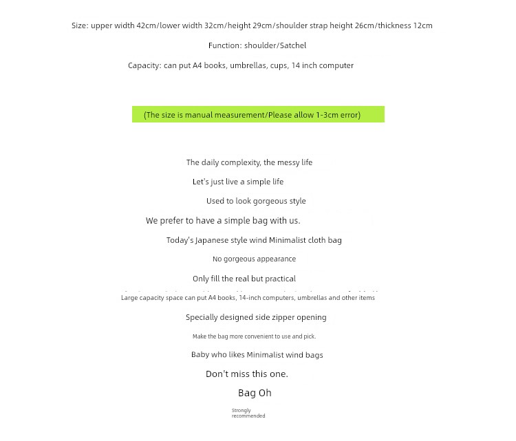 Bag Female Leisure Work Student Easiest for Match Canvas Bag