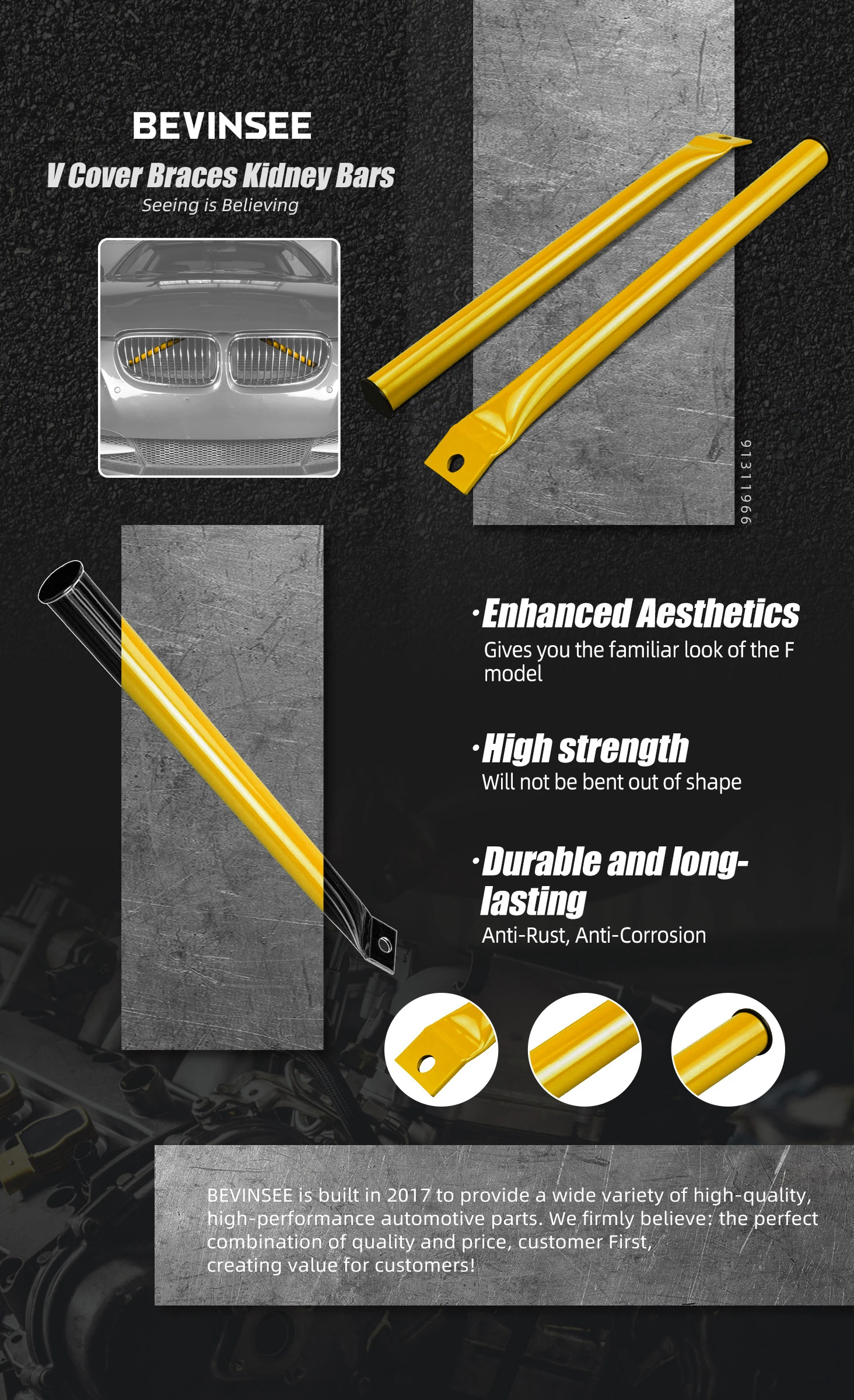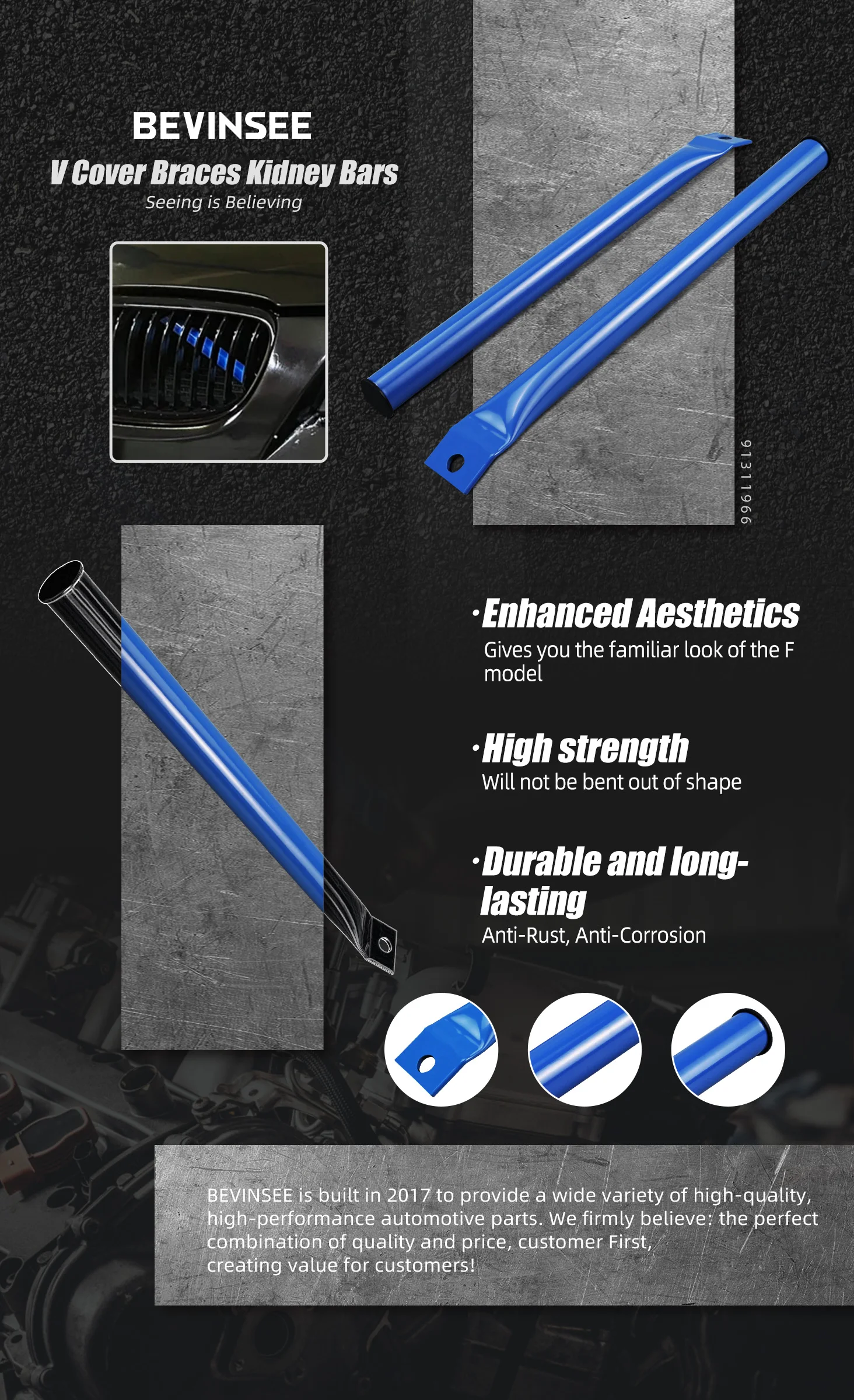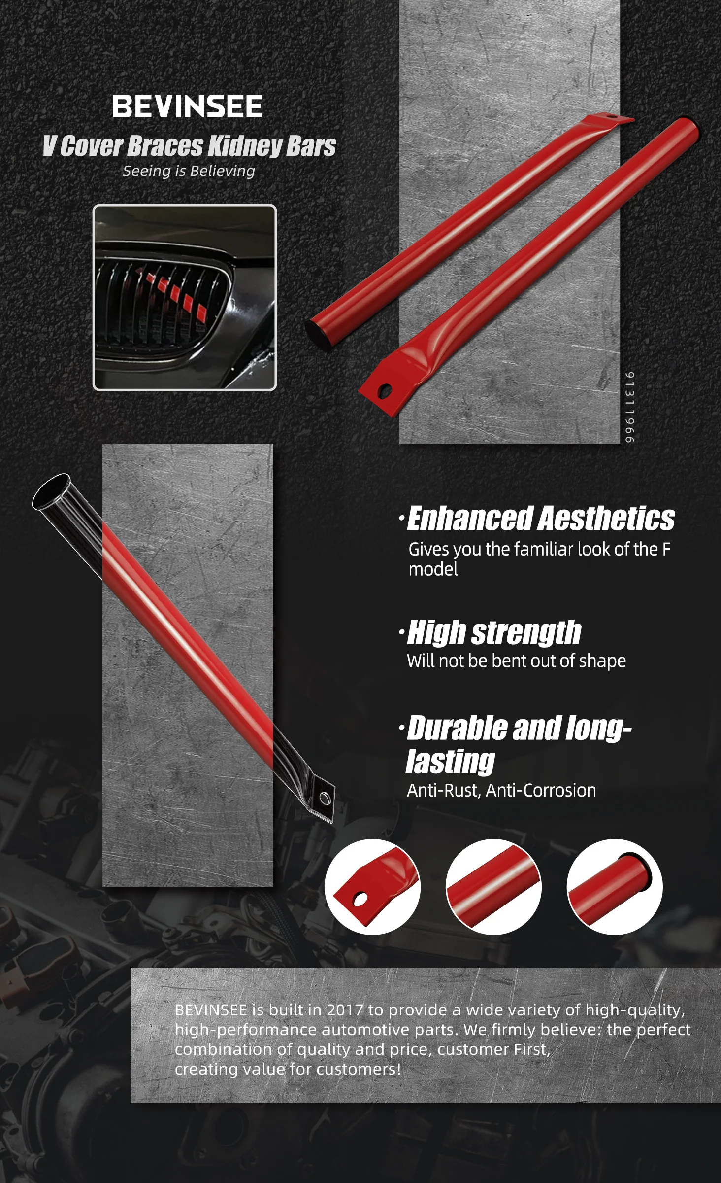 BEVINSEE Front Grille Kidney Braces for BMW E92 E90 E91 E93 2006 2007 2008 2009 2010 2011 2012 2013