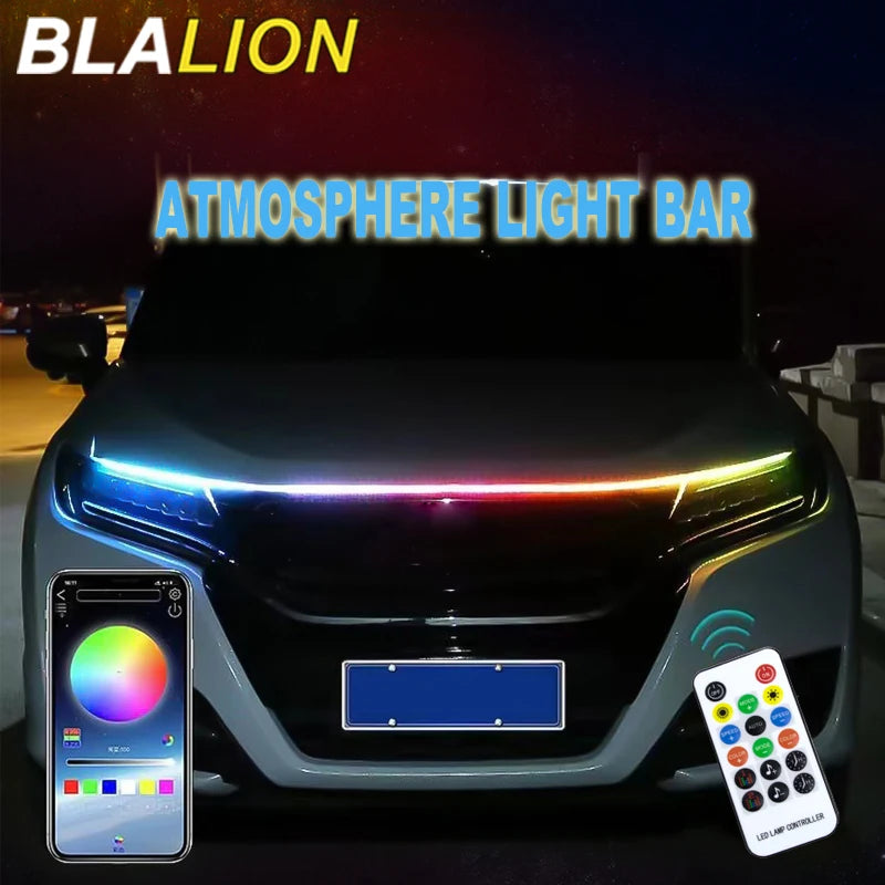 BLALION Car Hood LED Daytime Running Light Scan Starting Waterproof Flexible Auto Engine Hood Guide Decorative Ambient Lamp 12V