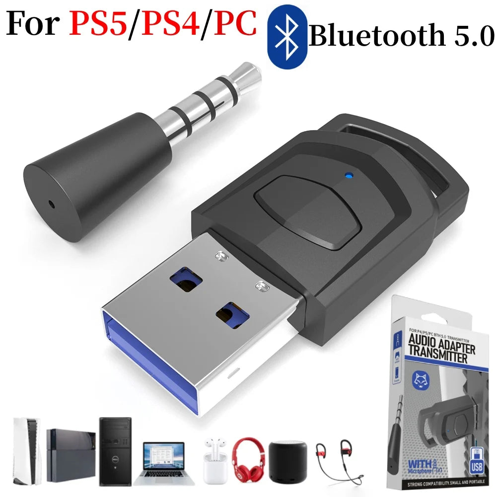 Bluetooth Audio Adapter Wireless Headphone Adapter Receiver for PS5/PS4 Game Console PC Headset 2 in 1 USB Bluetooth 5.0 Dongle