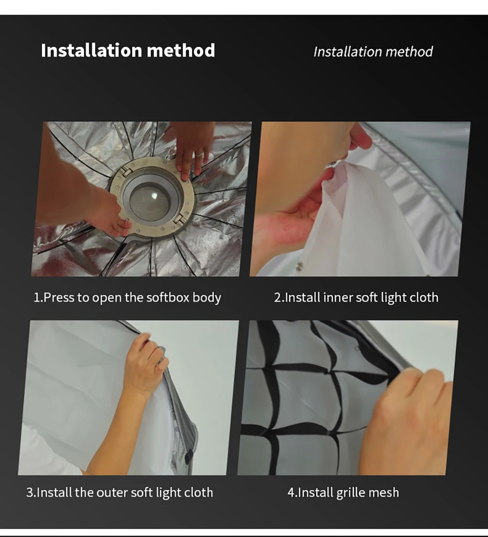 Bowens Mount Honeycomb Grid Softbox Kit Lamp Lantern Elinchrom One Step Quick Ball Diffuser Soft Light Modifier Video Shooting