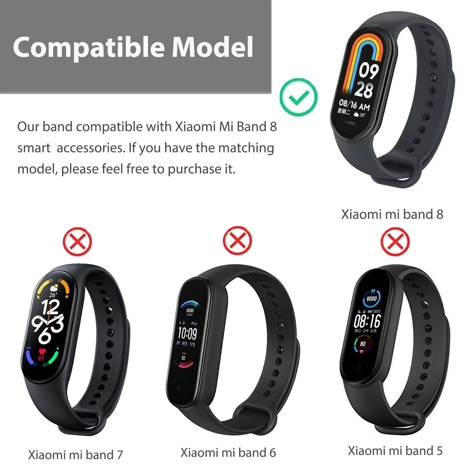 [Compatible Model] Our straps compatible with Xiaomi Mi Band 8 smart accessories. If you have the matching model, please feel free to purchase it. Note: only includes Xiaomi Mi Band wrist strap, not including watch.