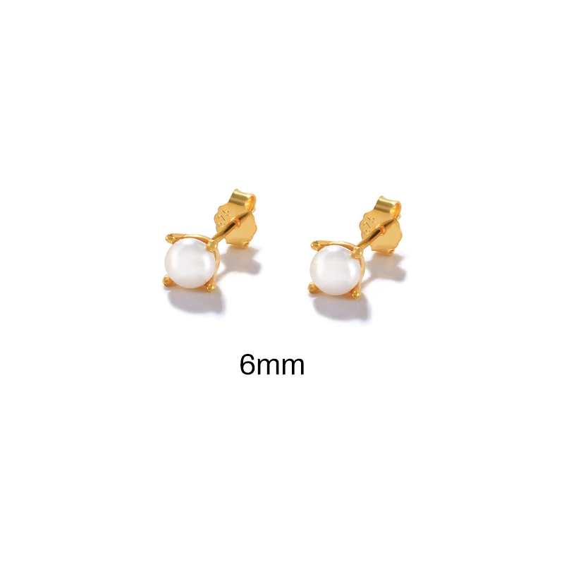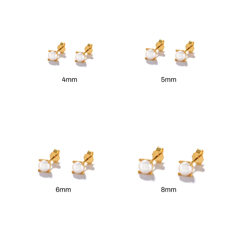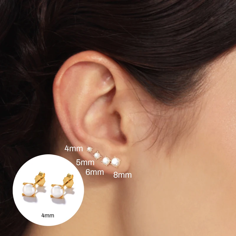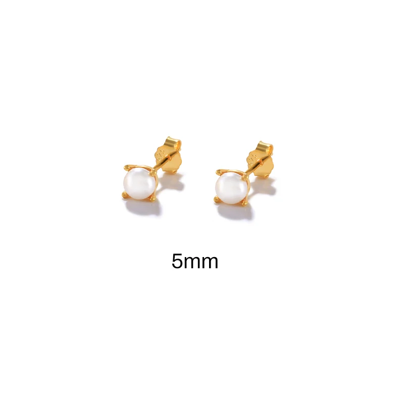 CANNER 4 5 6 8mm Pearl 925 Sterling Silver Earring For Women Stud Earrings Piercing Oreille 18K Gold Fine Jewelry Mom Gift