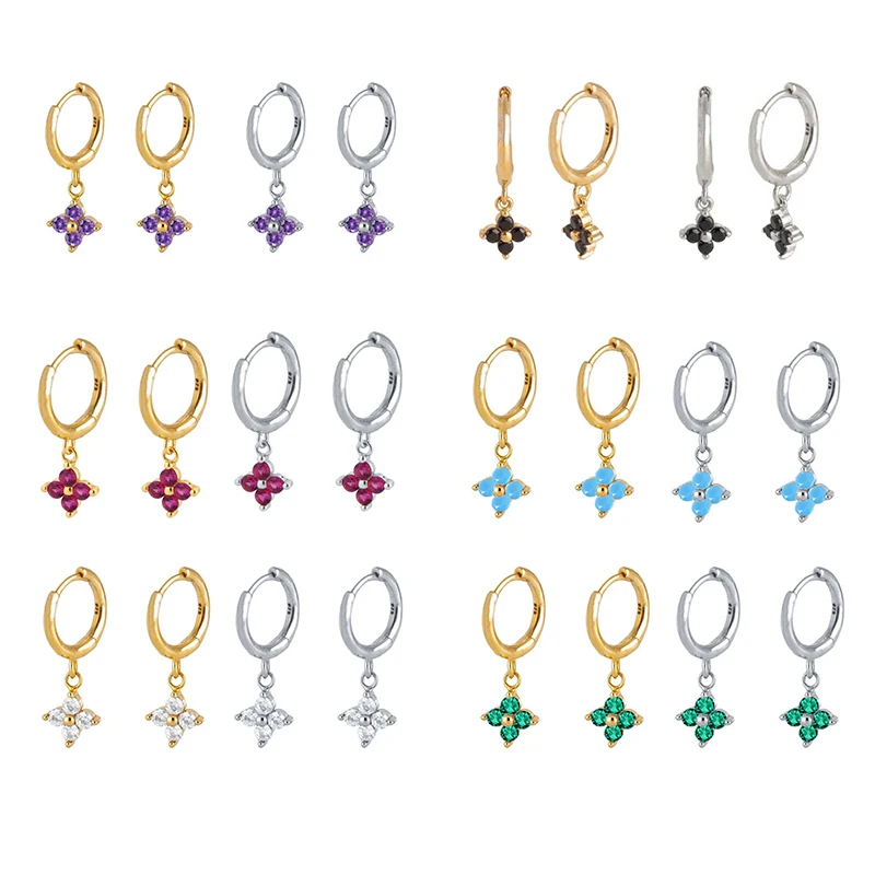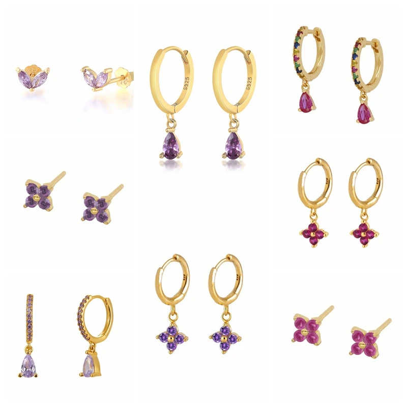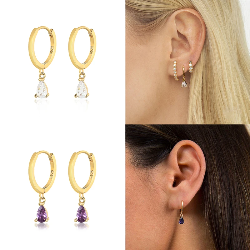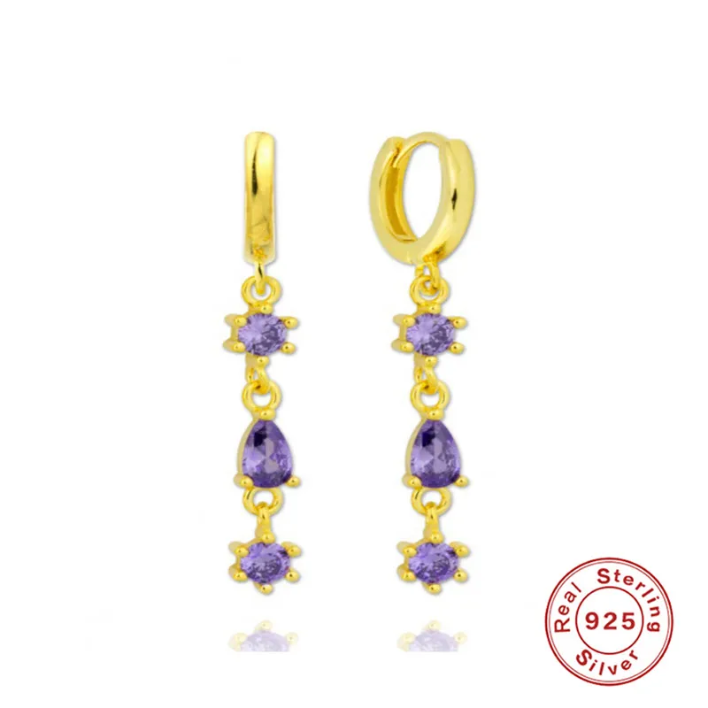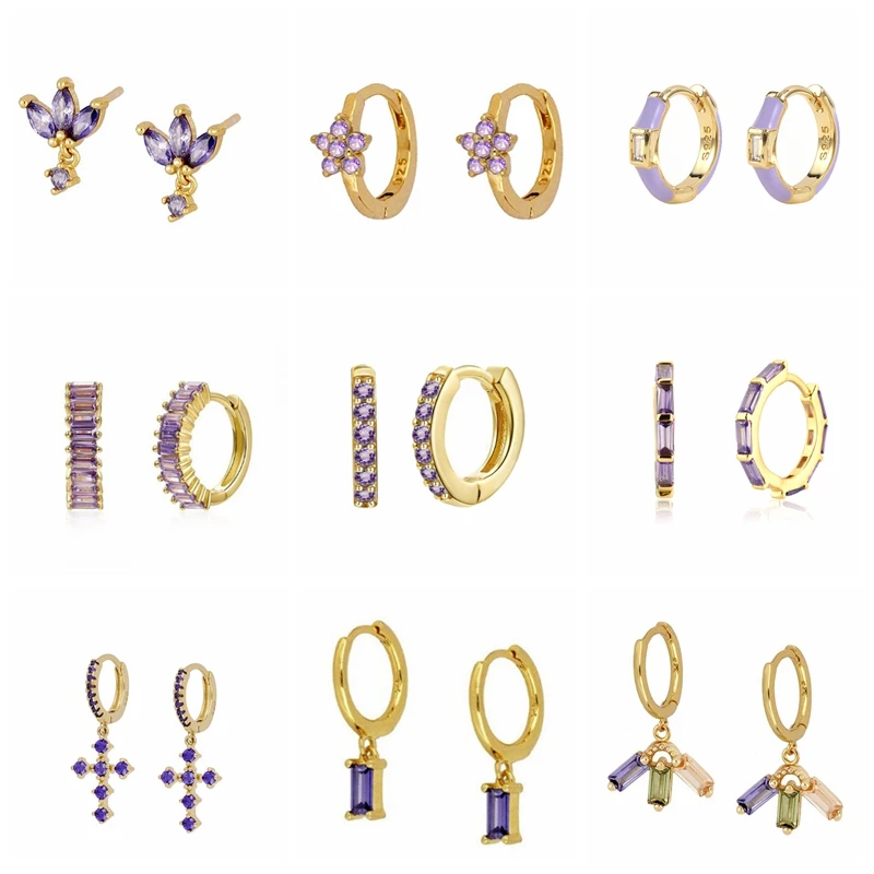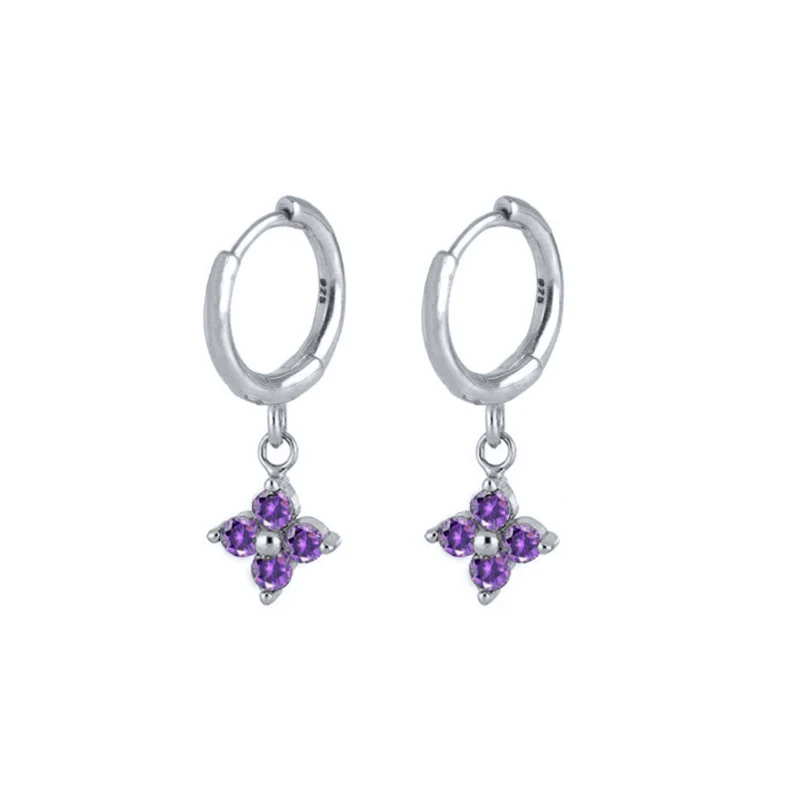 CANNER Diamond-stud Zircon Turquoise Earrings Hoops 925 Sterling Silver Earrings For Women Silver Jewelry Violet Earring Aretes