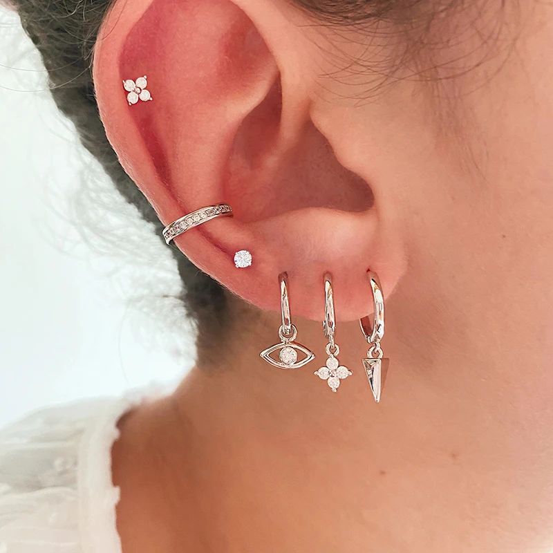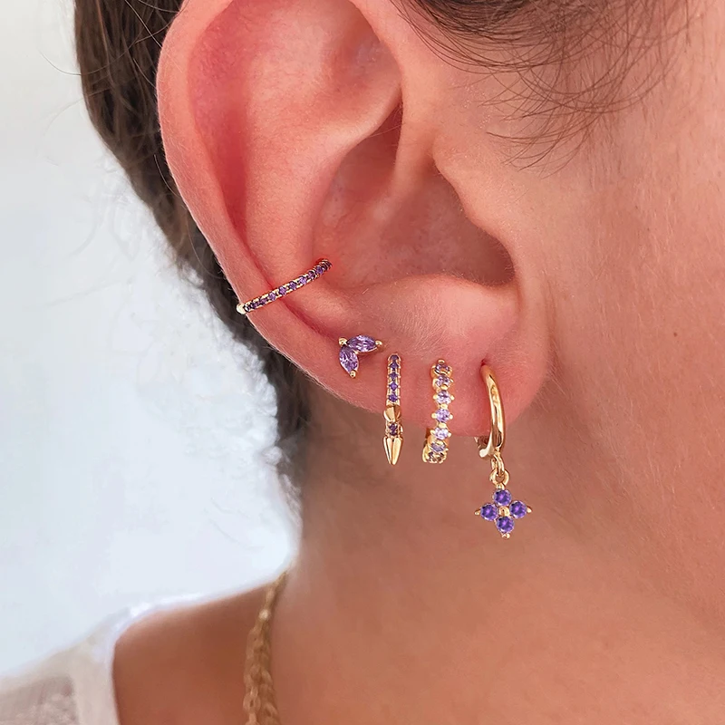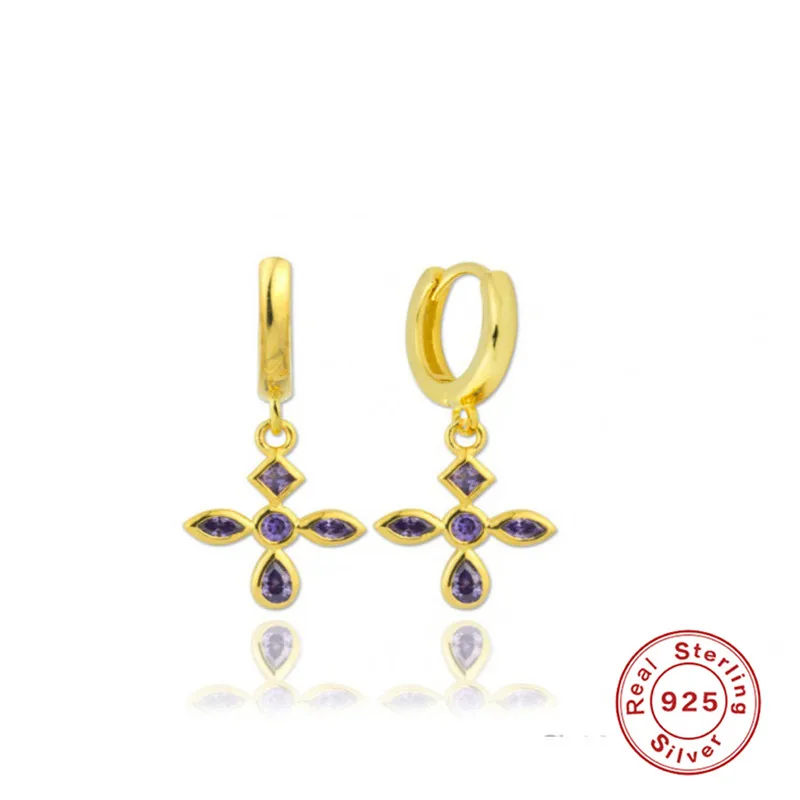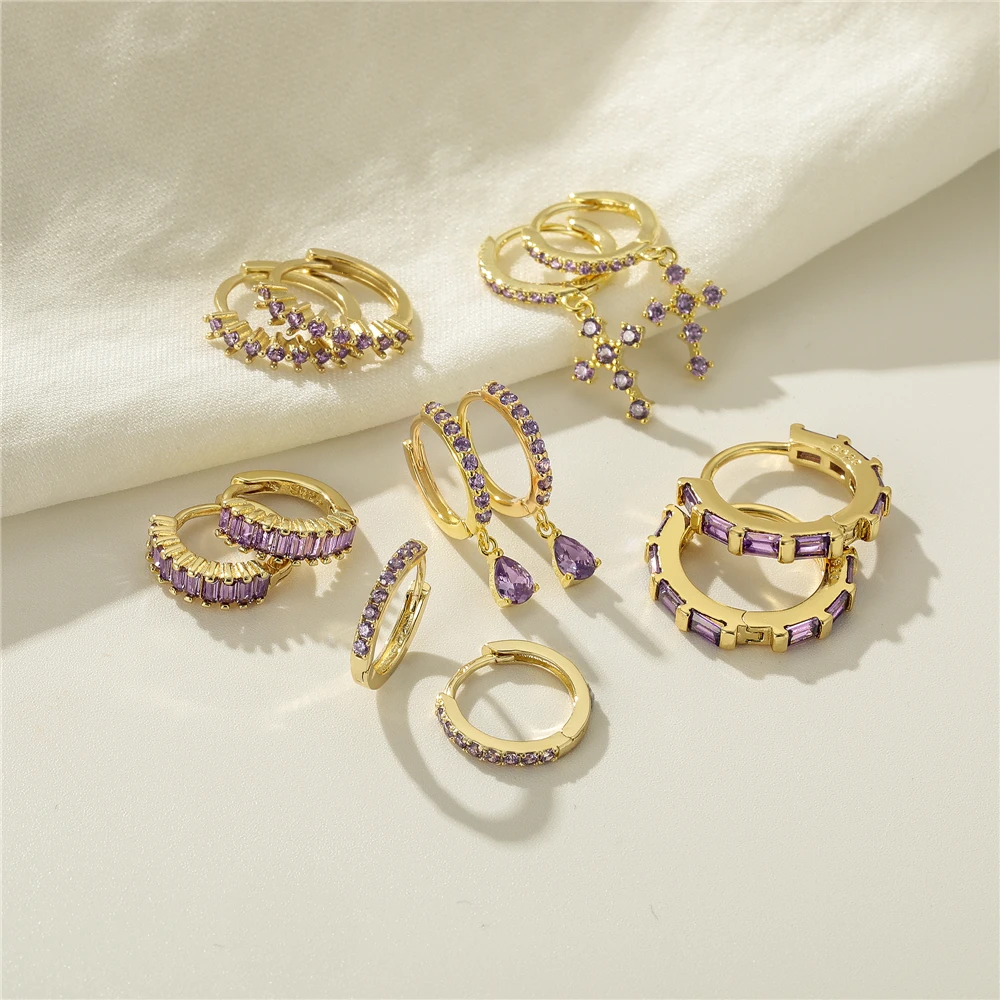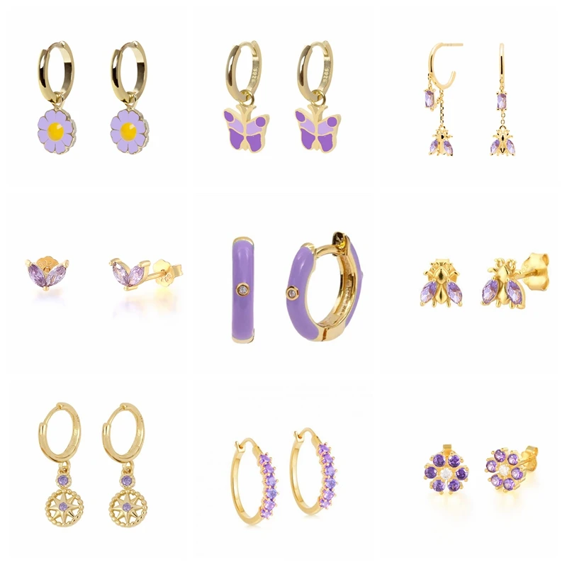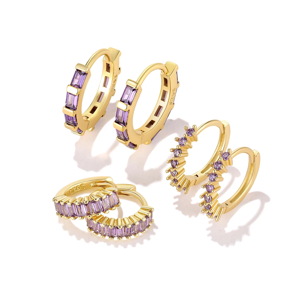 CANNER Diamond-stud Zircon Turquoise Earrings Hoops 925 Sterling Silver Earrings For Women Silver Jewelry Violet Earring Aretes
